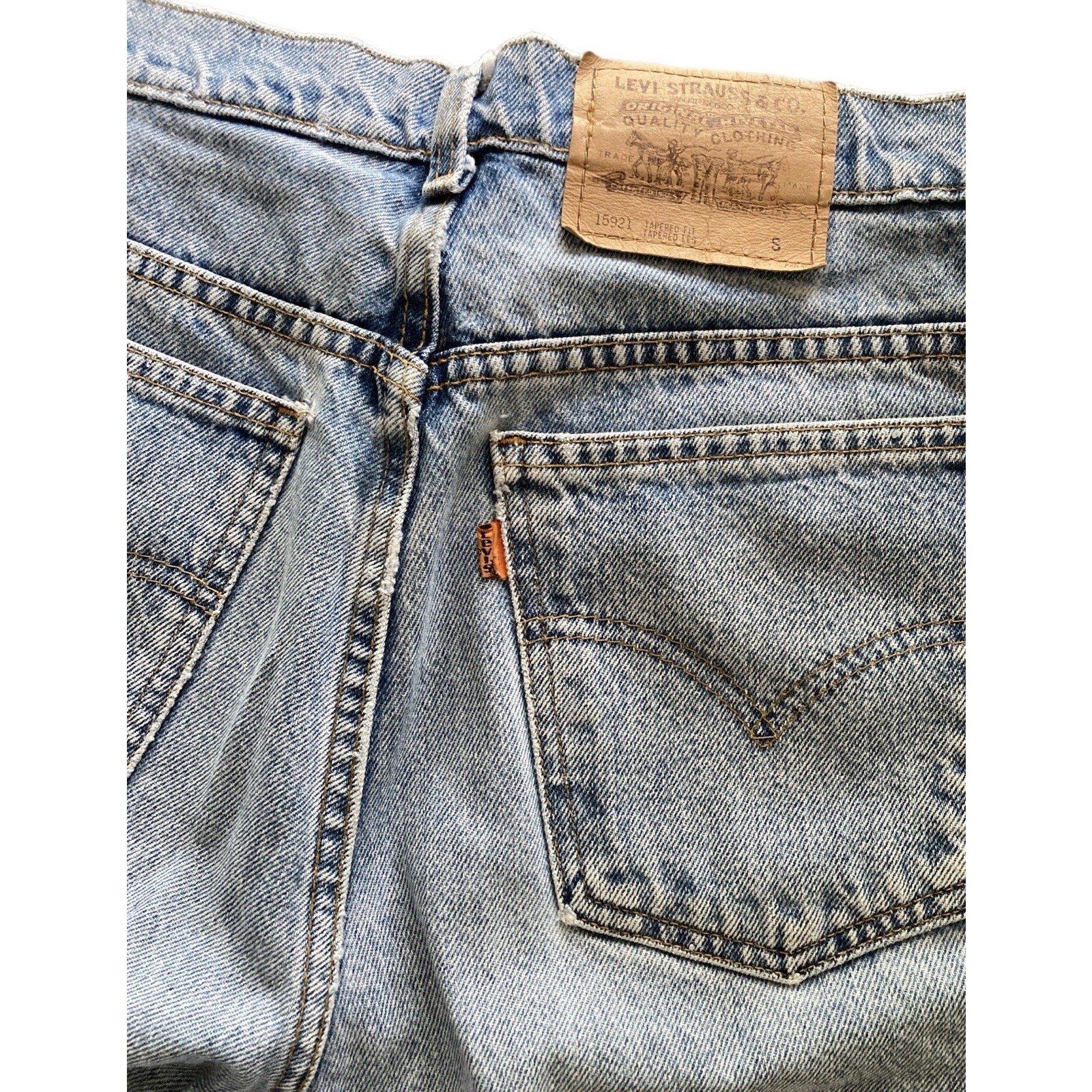 Vintage Levi s Orange Tab 70s 80s Light Wash Long Cut Off Shorts Women s 28/29