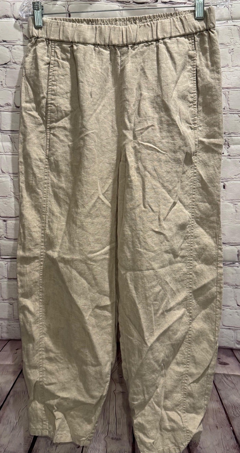 Eileen Fisher Women 100 Organic Linen Lightweight Elastic Waist Cropped Pants S