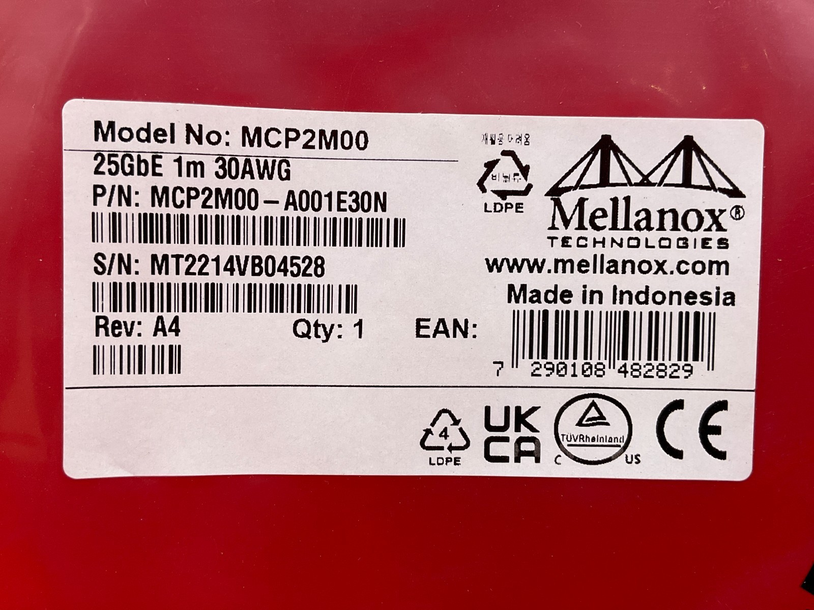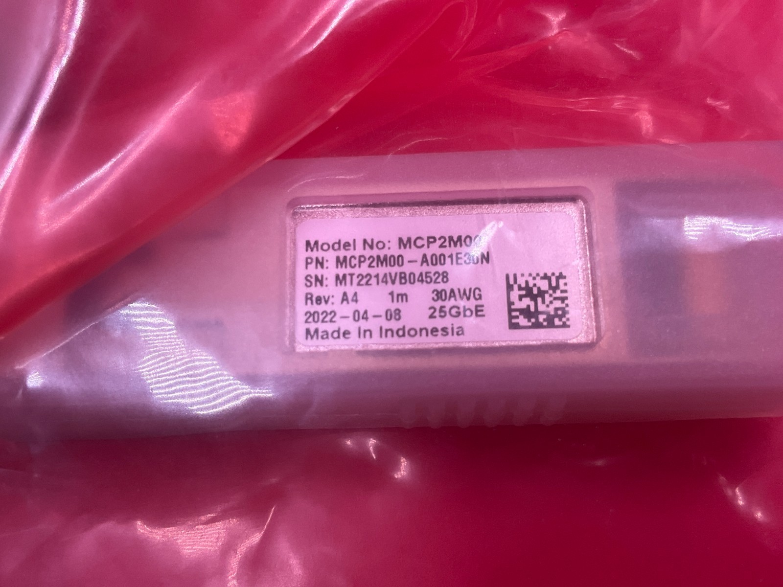 как выглядит Mellanox LinkX QSFP28 to QSFP28 Passive Copper Hybrid Cable 1m MCP2M00-A001E30N фото