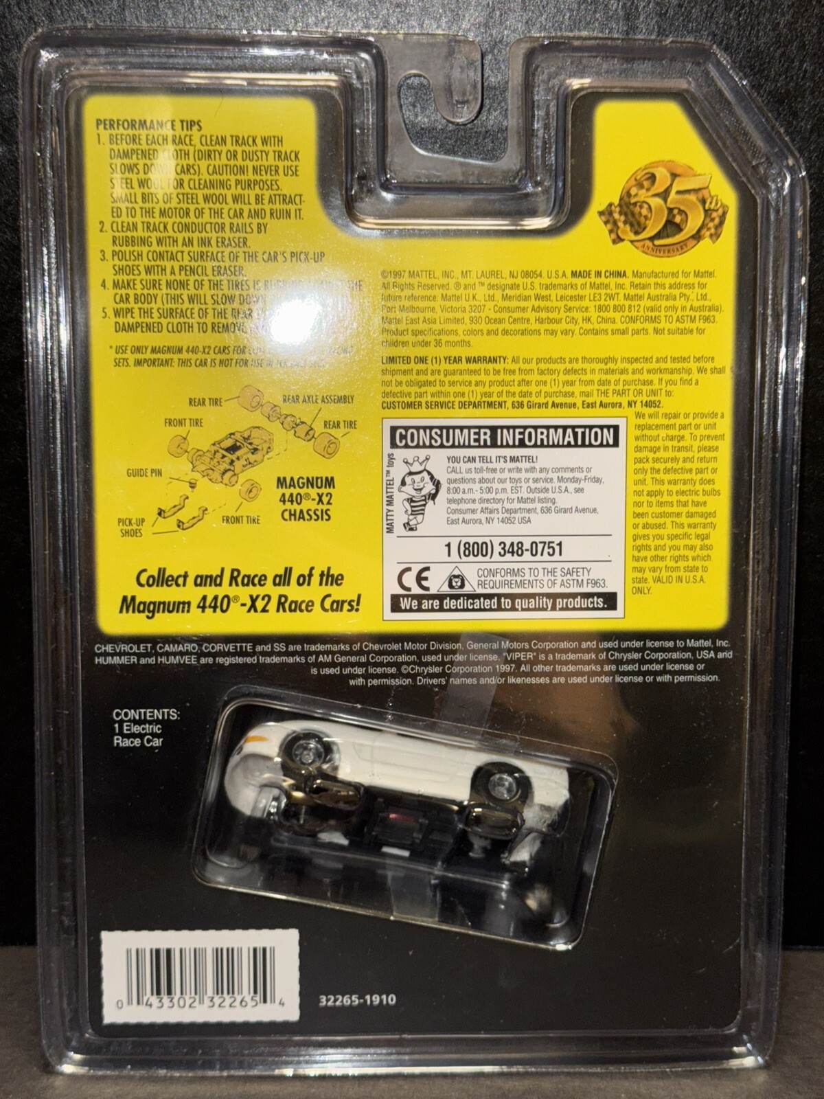 TYCO/Mattel 1997 Chevy Corvette White Molded Variant 440x2 HO SLOT CAR - MOC