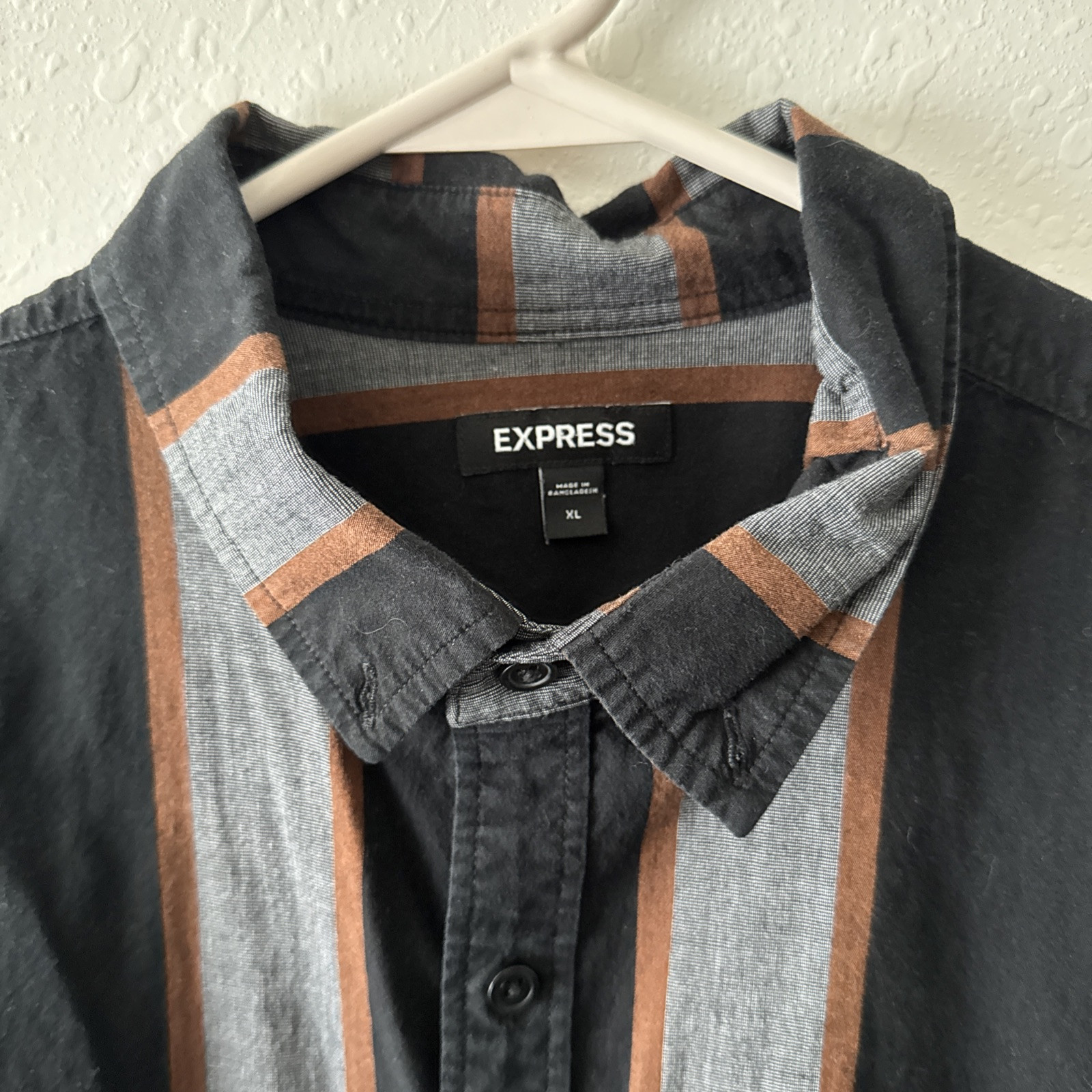 как выглядит Express Mens XL Button Down Long Sleeve Shirt Black Grey Copper Brown фото