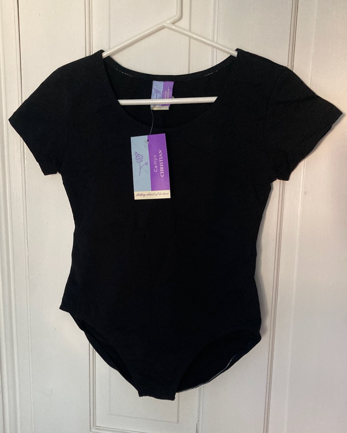 как выглядит Caitlyn Christian black short sleeve leotard cotton/poly/lycra size M, L, XL NWT фото