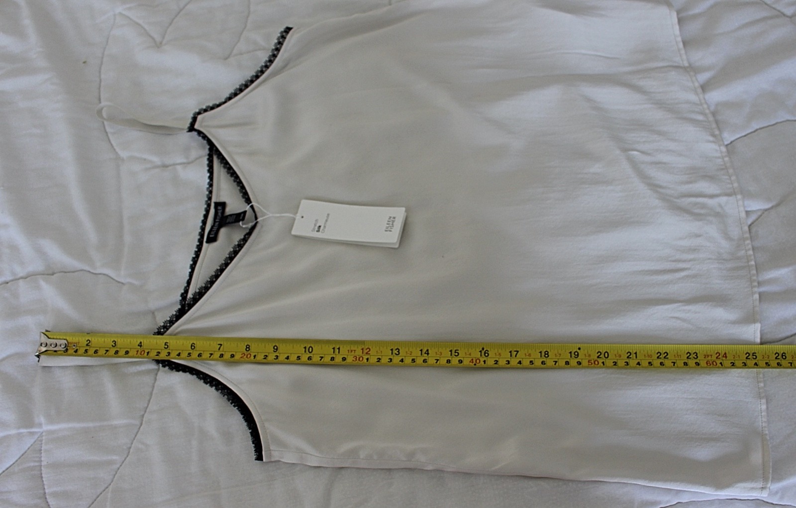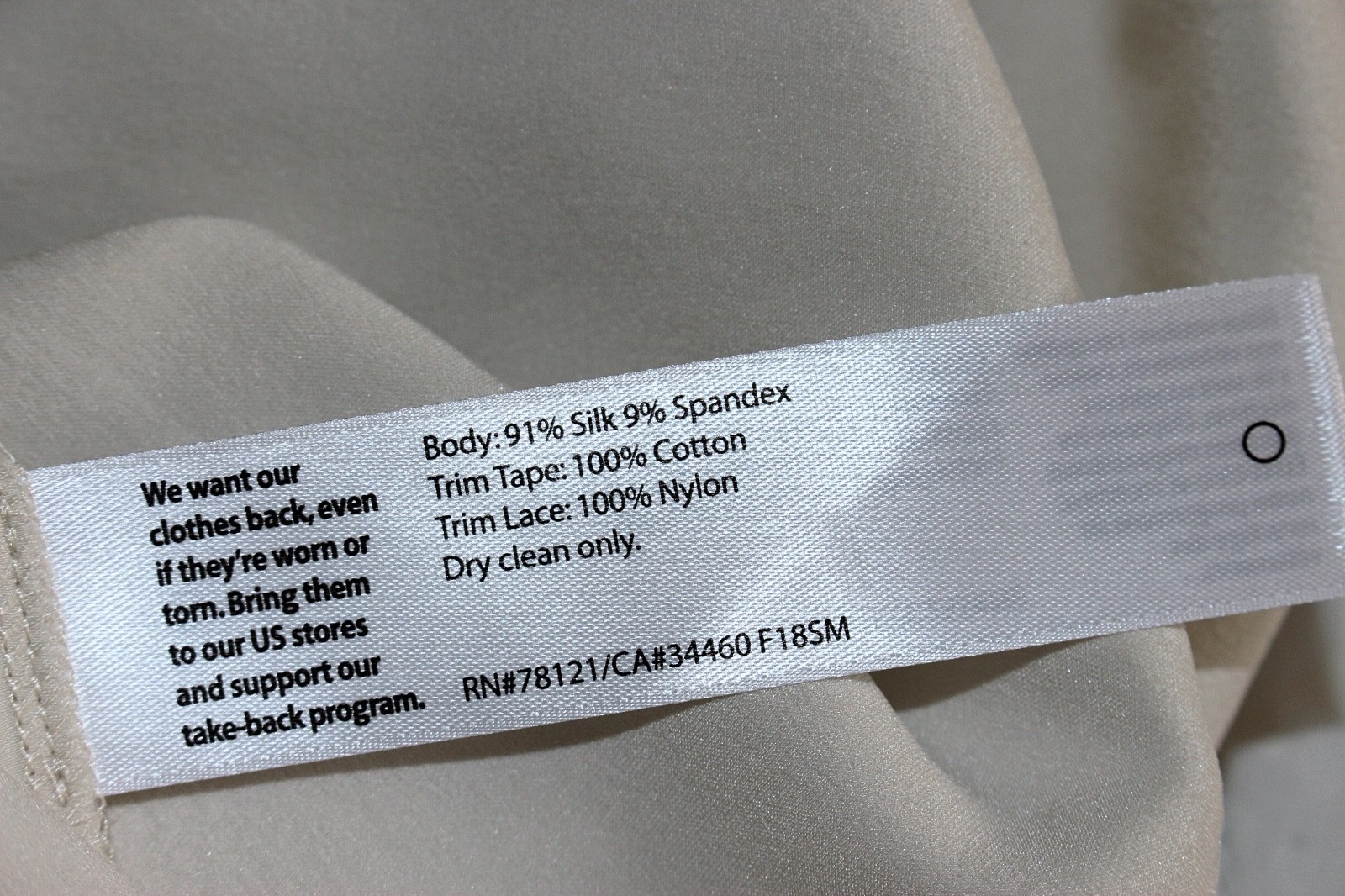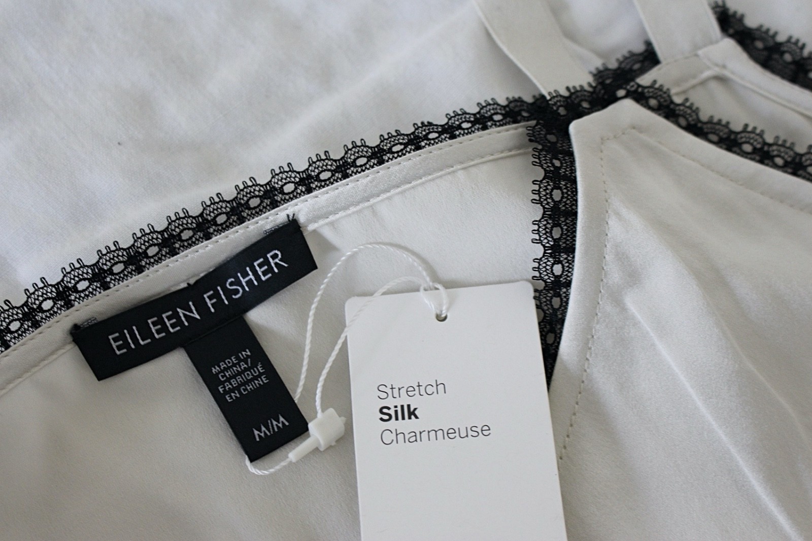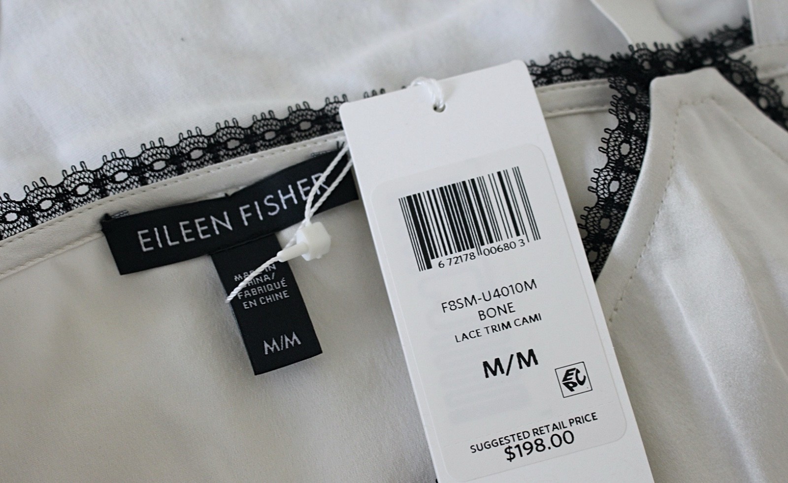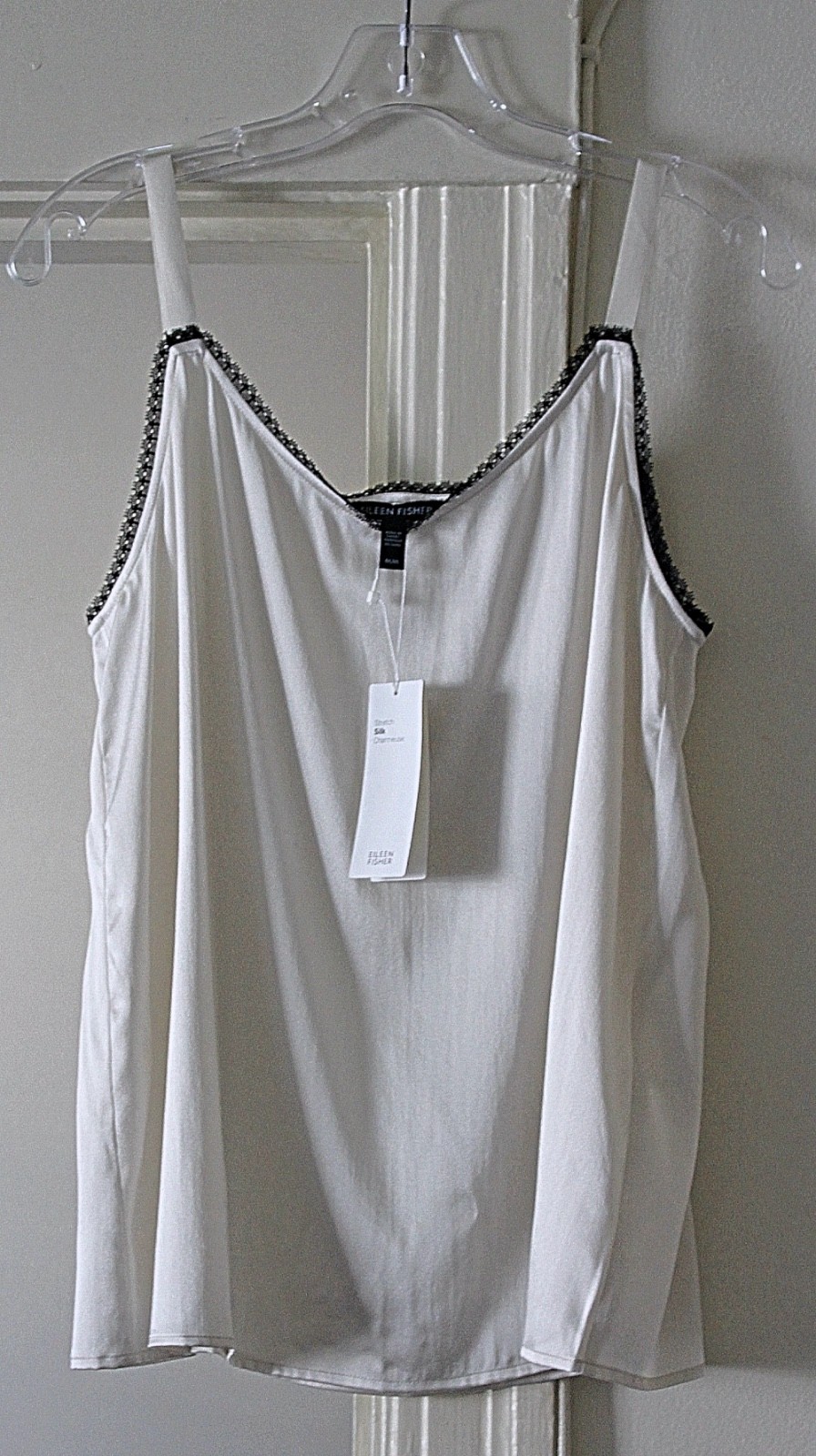 как выглядит NEW Eileen Fisher - Stretch Silk Charmeuse Lace Trim Cami, Bone - M - 198 фото