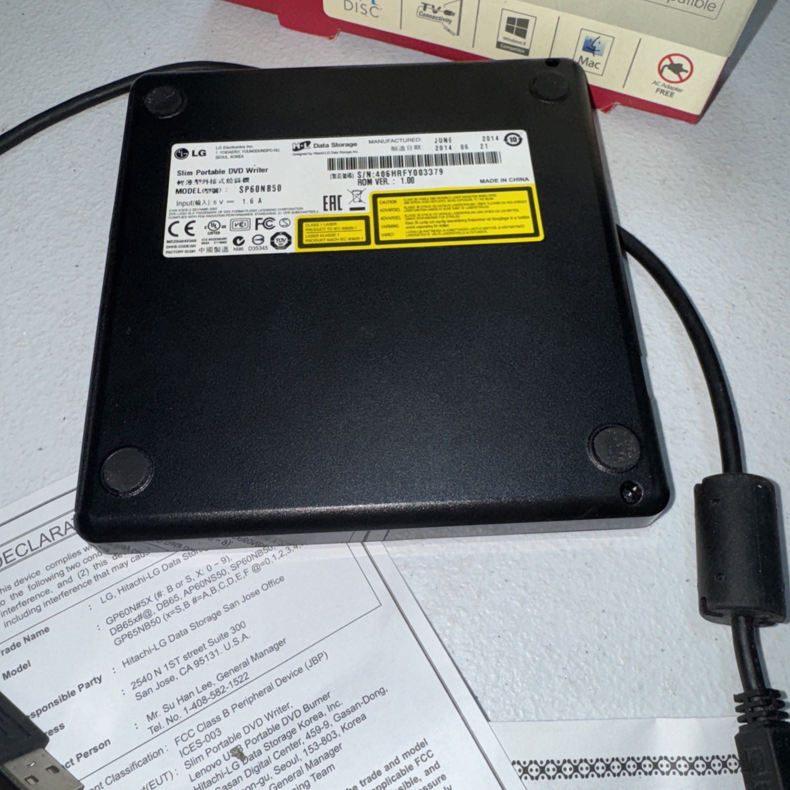 LG SP60 Ultra Slim Portable DVD Writer USB 2.0, M-DISC, Mac Windows Comp