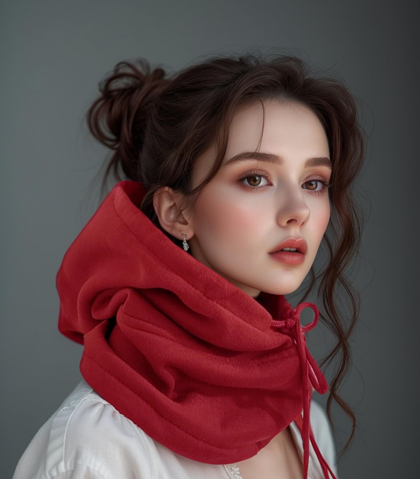 как выглядит Unisex Sporty Snood Hat with drawstring Hood Scarf Neck Warmer Winter Balacla... фото