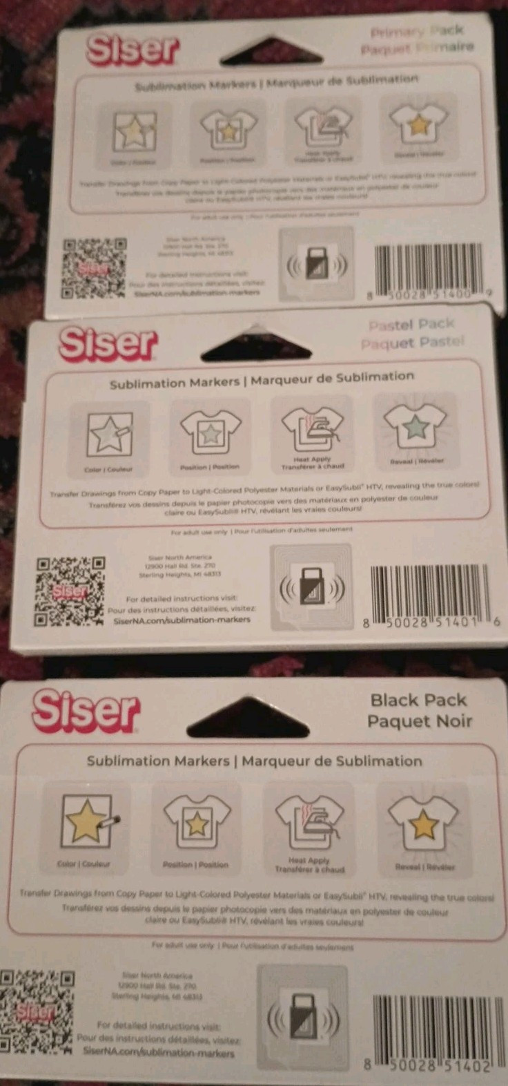 X3 BOXES Siser Sublimation Markers 6 Black 6 Primary 6 Pastel