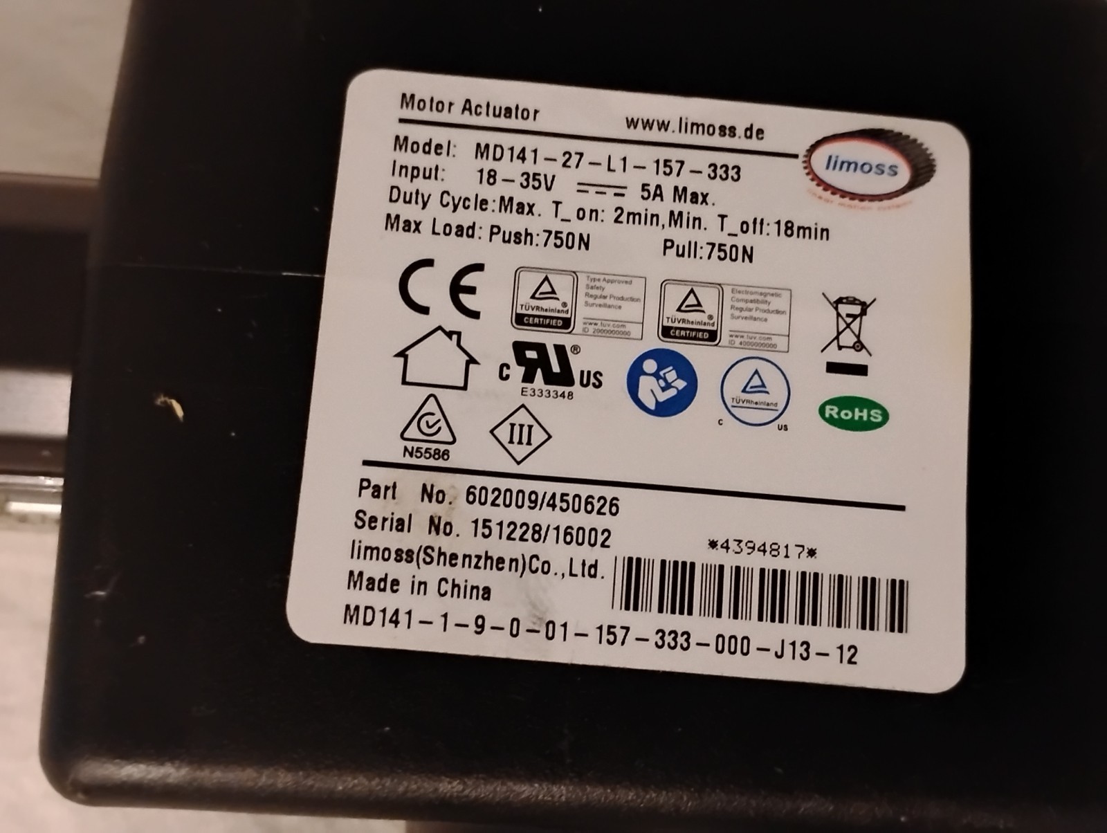 Limoss Motor Actuator For Power Recliners L1 Model MD141-27-L1-157-333 /450626