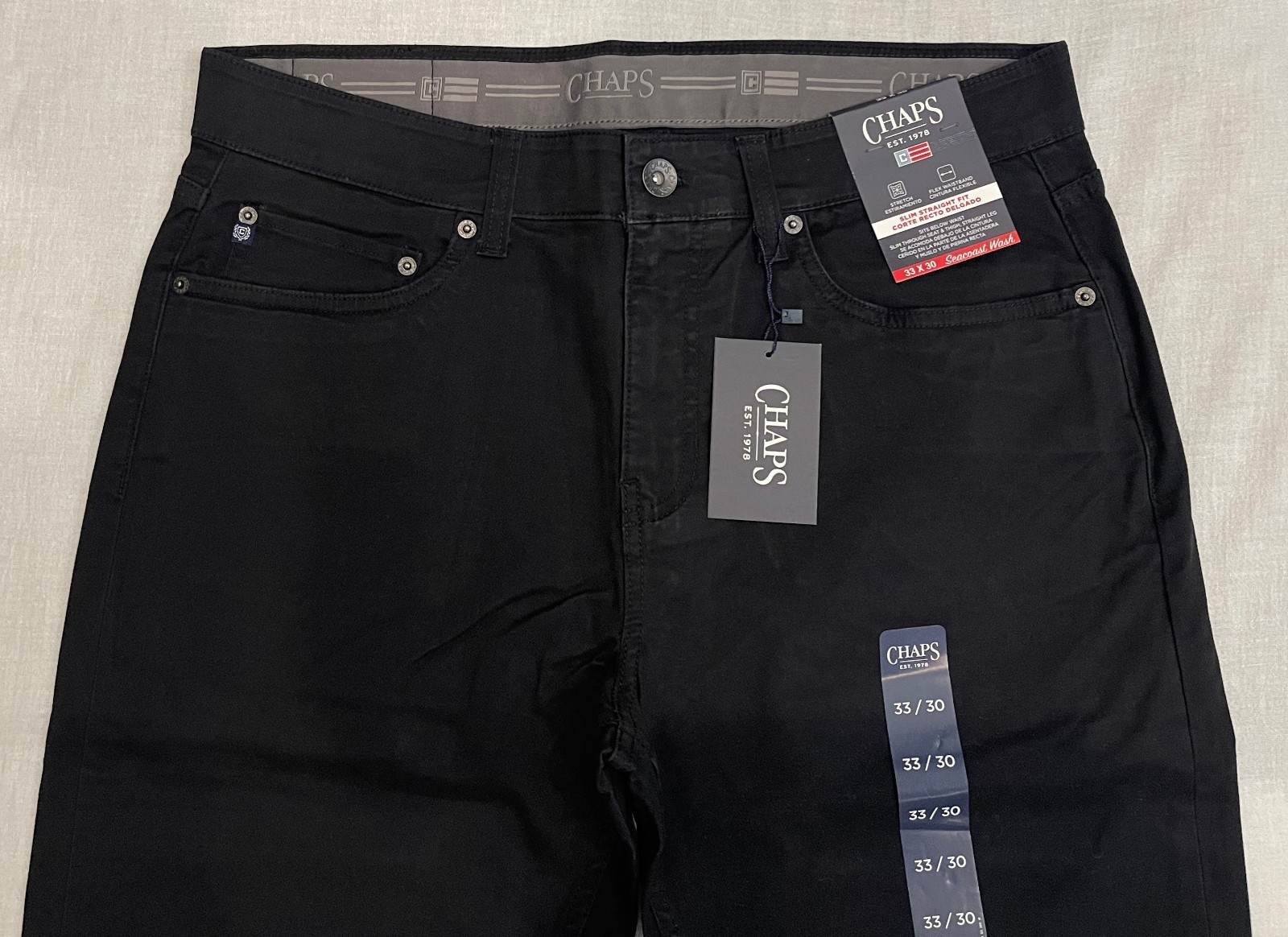 как выглядит Chaps Mens Flex 5-Pocket Pants Slim Straight 33X30 Black W33L30 New фото
