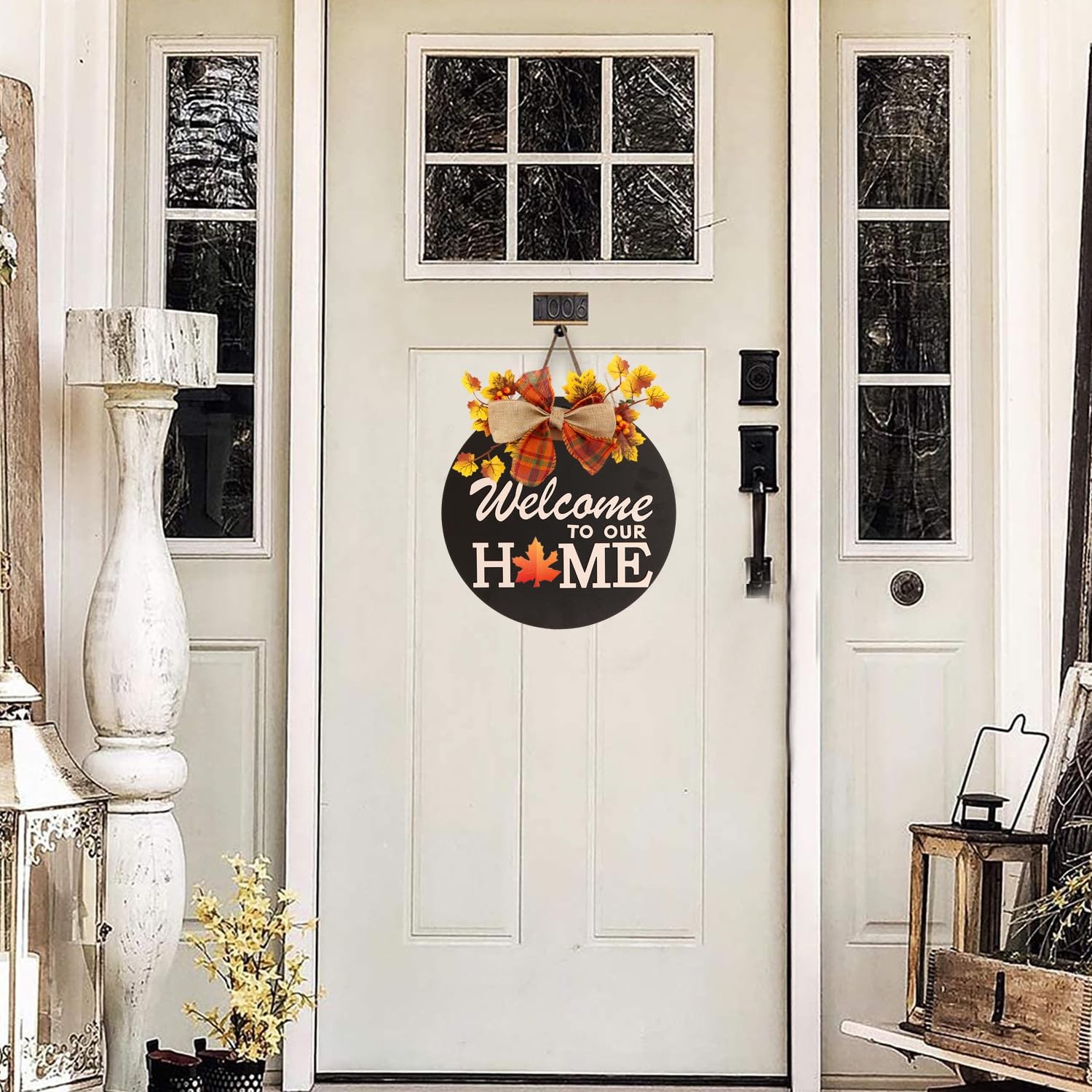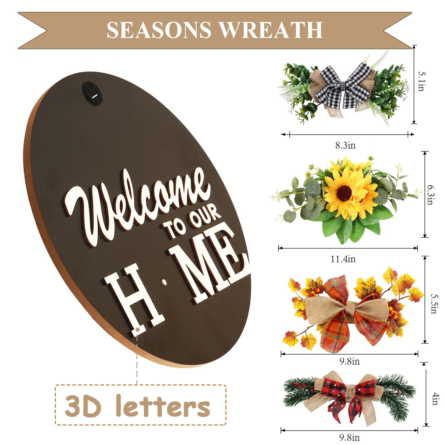 Interchangeable Welcome Sign for Front Door Decoration with 4 Seasonal Wreath...