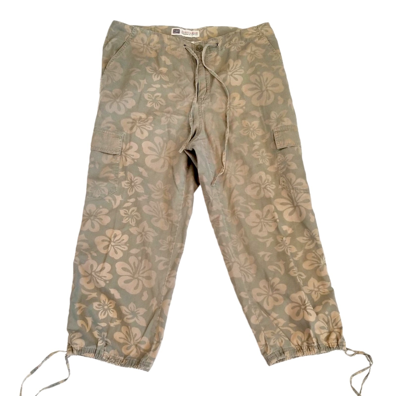 Vintage 90s Khaki Green Hawaiian Floral Cargo Cropped Pants Capris Size M 8/10
