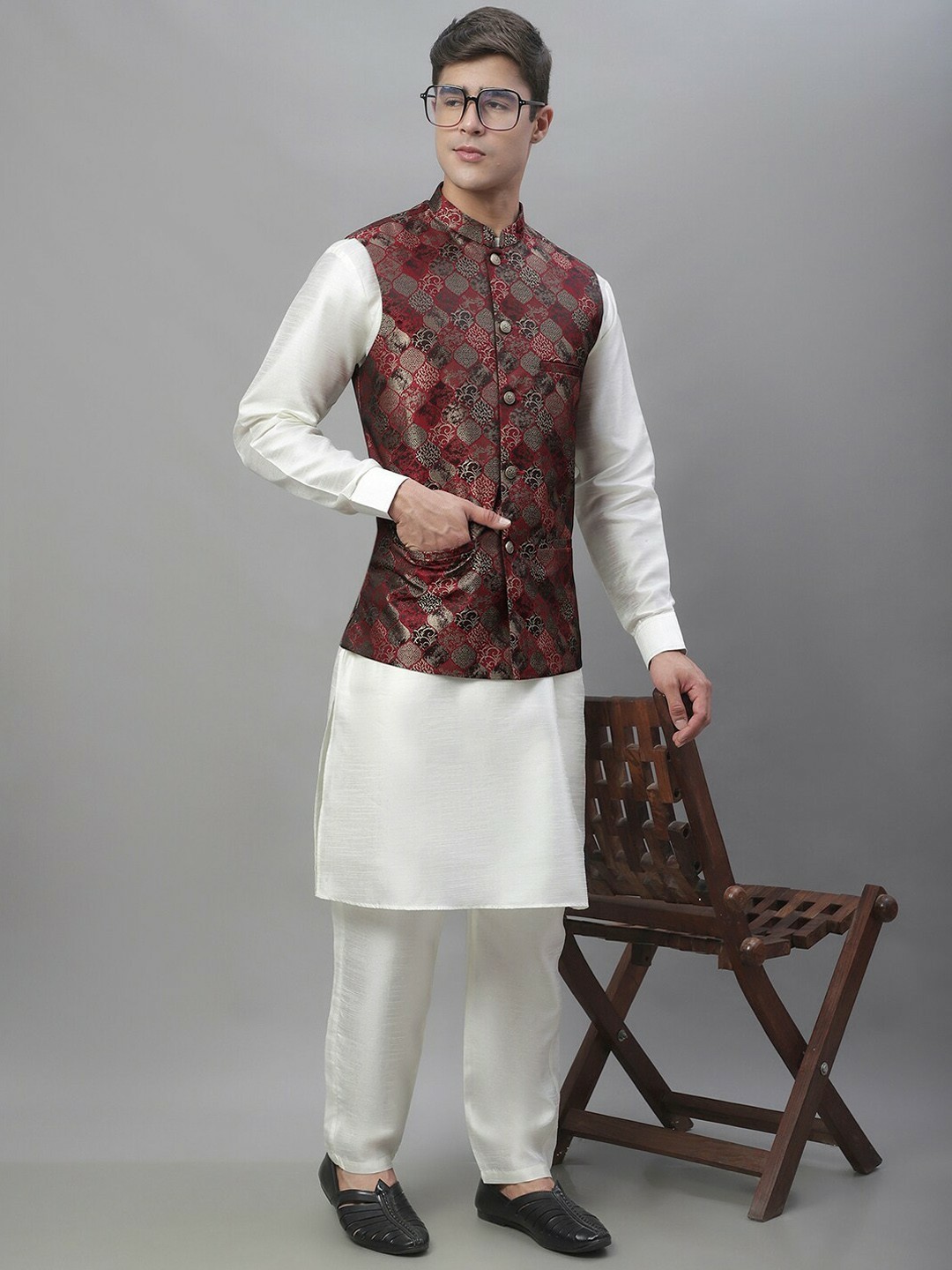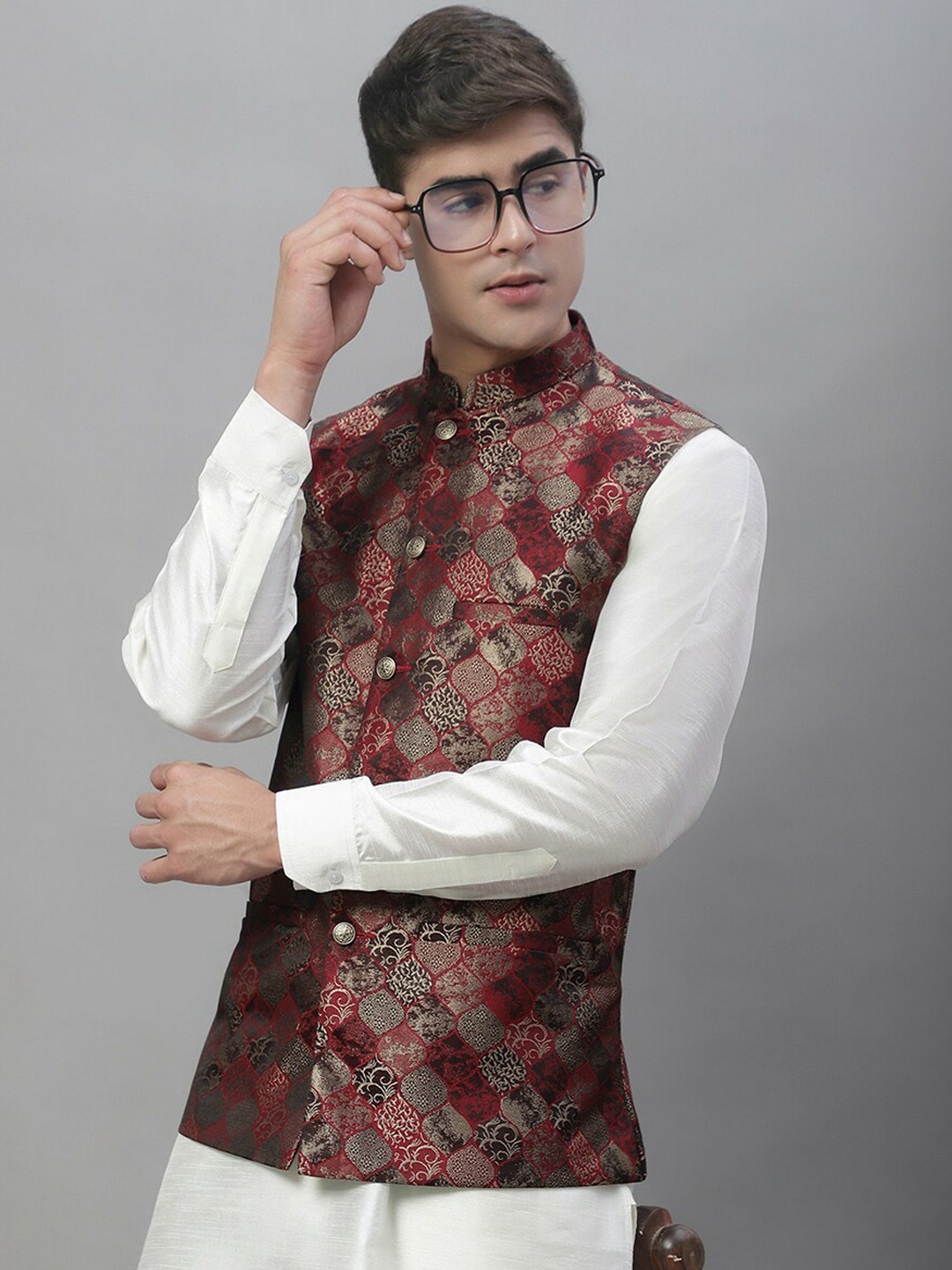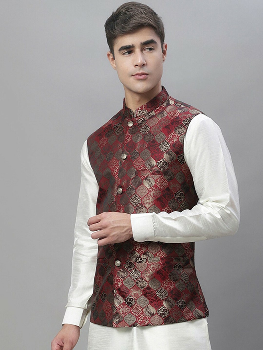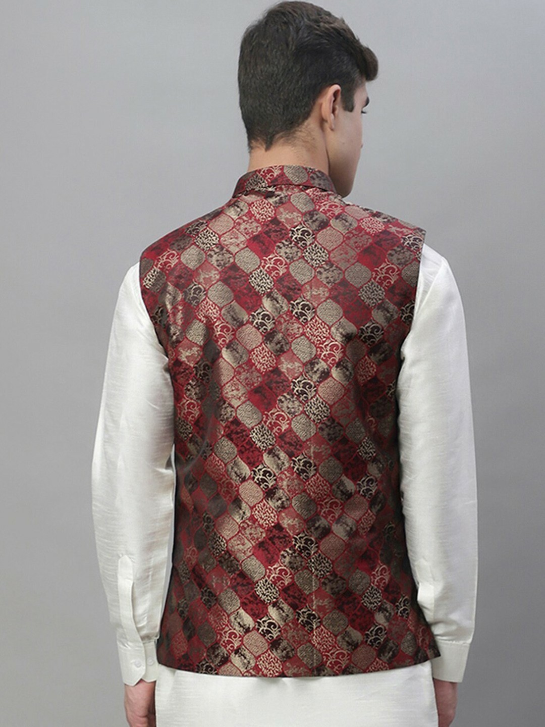 Men s Nehru Jacket Woven Silk Cotton, Wedding Festive Ethnic Sleeveless Vest