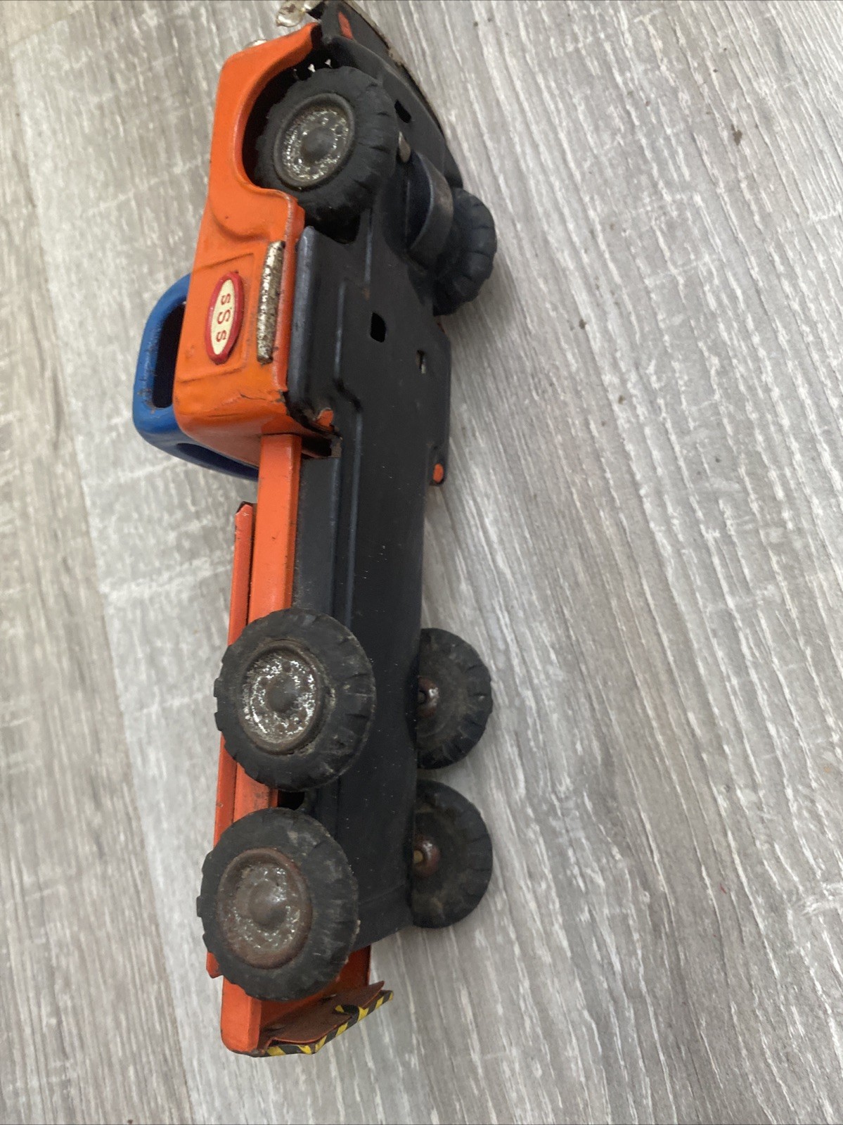 как выглядит VINTAGE 1950s SSS Japan Tin Studebaker Orange Lucky Friction Crane Truck S.1135 фото