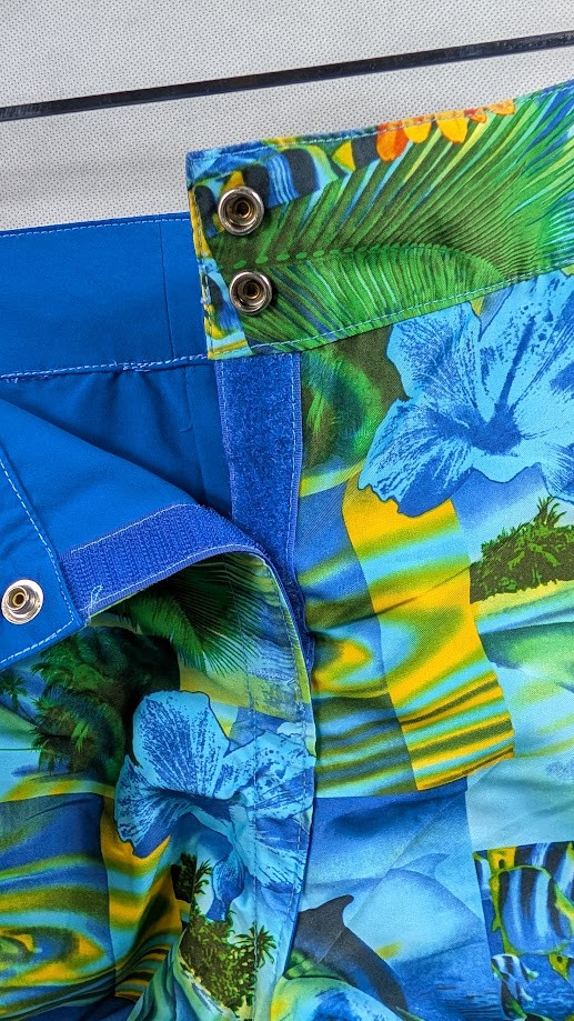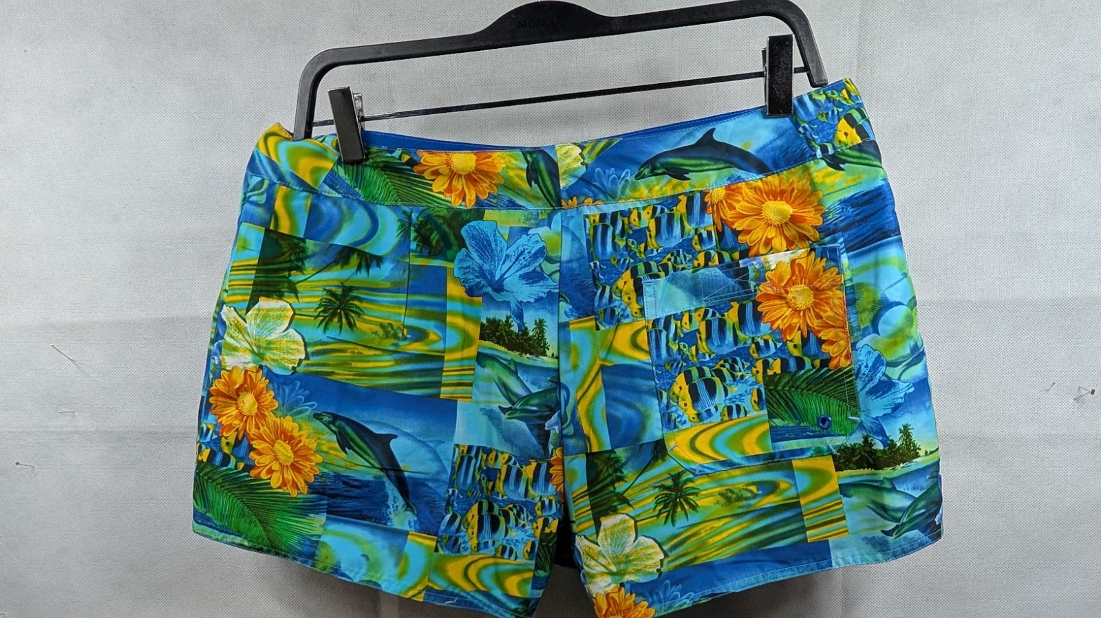 Speedo Swim Trunk Shorts Sz M Reversible Solid Dolphin Aloha Graphics vtg pouch