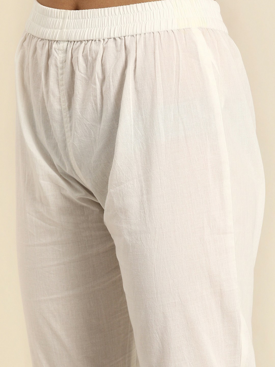 Women s Pure Cotton Woven A-Line Kurta with Trousers Dupatta Ethnic Set