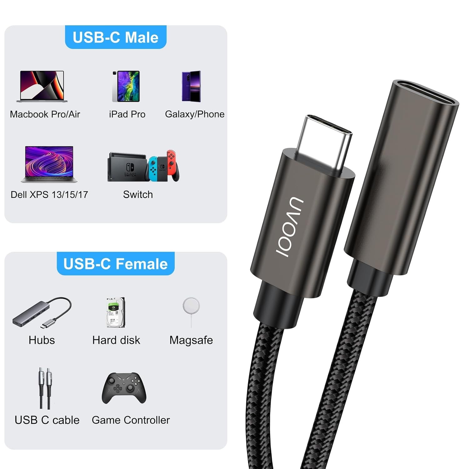 USB C Extension Cable 10FT, USB C Extender Cord Male to Female USB 3.2 Type C