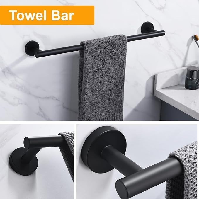Set Includes: 1× Tower Bar, 1× Adjustable Tower Bar, 2× Wall Hooks, 1× Toilet Paper Holder, 1× Tower Ring
