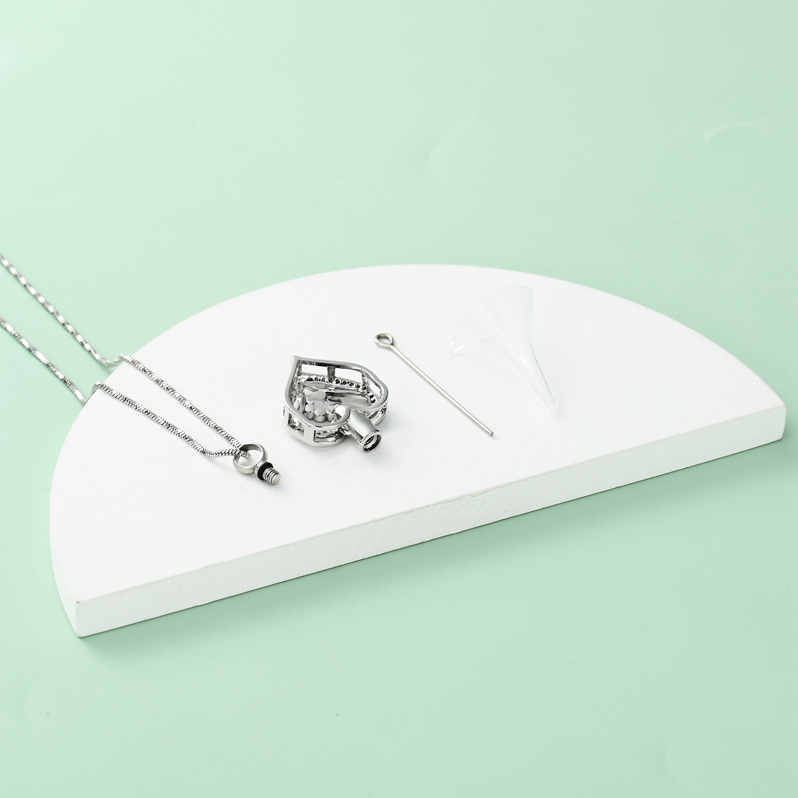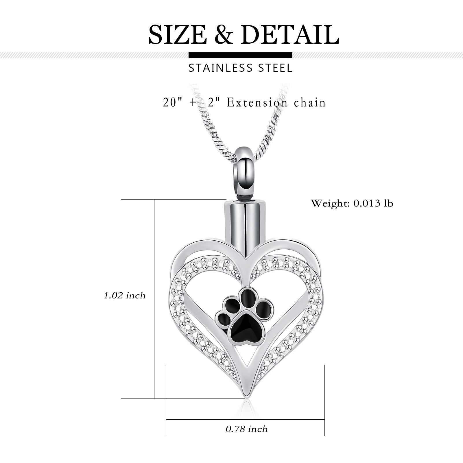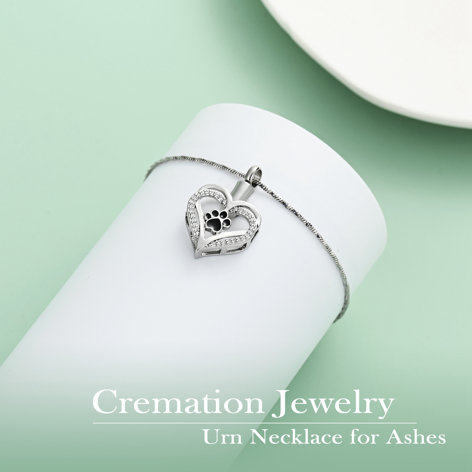 Paw Print Heart Urn Pendant Cremation Jewelry Dog Cat Ashes Pet Memory Necklace