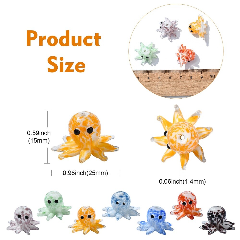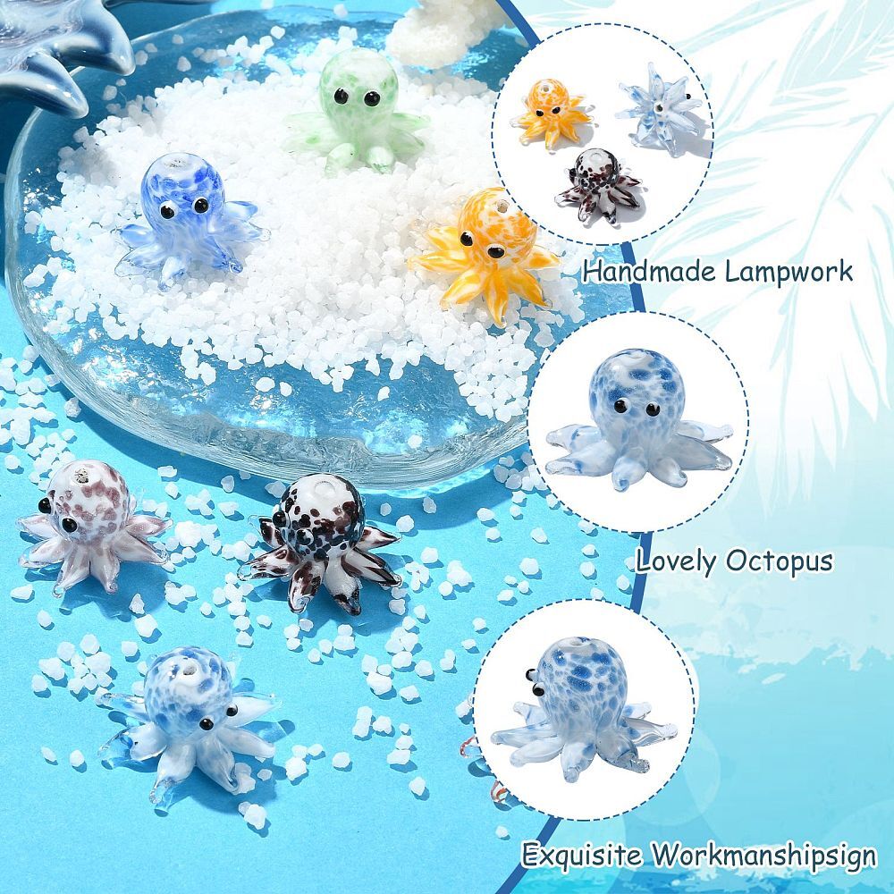 5pcs Lampwork Glass Octopus Beads Handmade Colorful Octopus Glass Bead for DIY