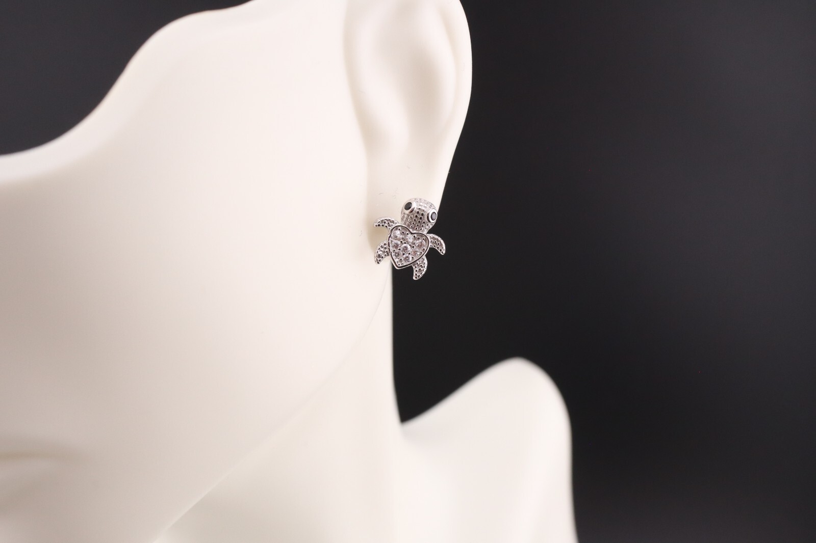 Cute Women's Sterling Silver Turtle Heart Stud Earrings with Push Back Closure