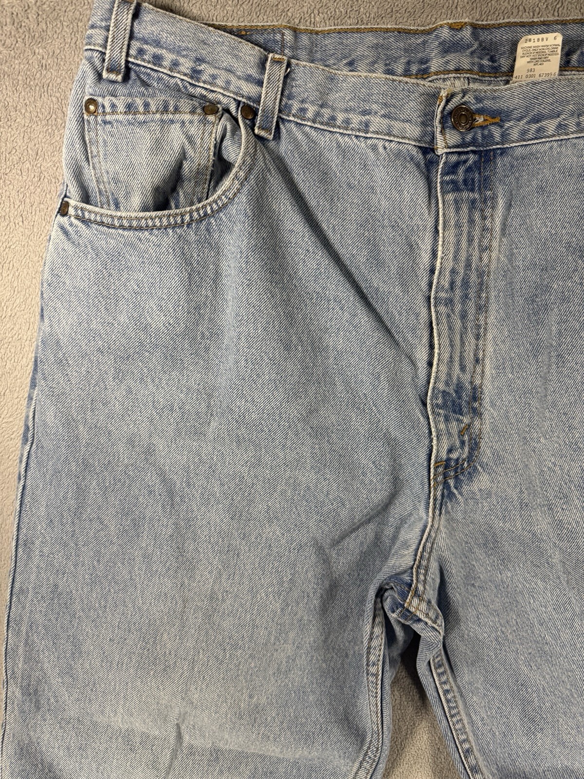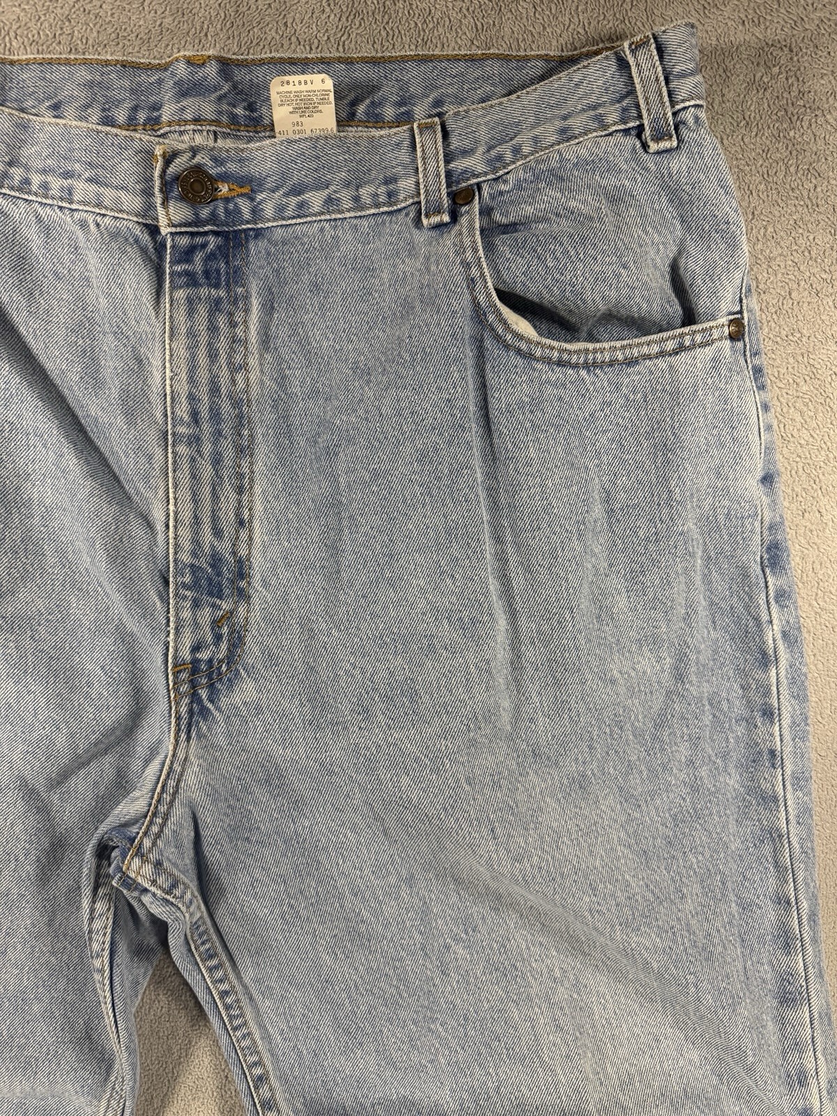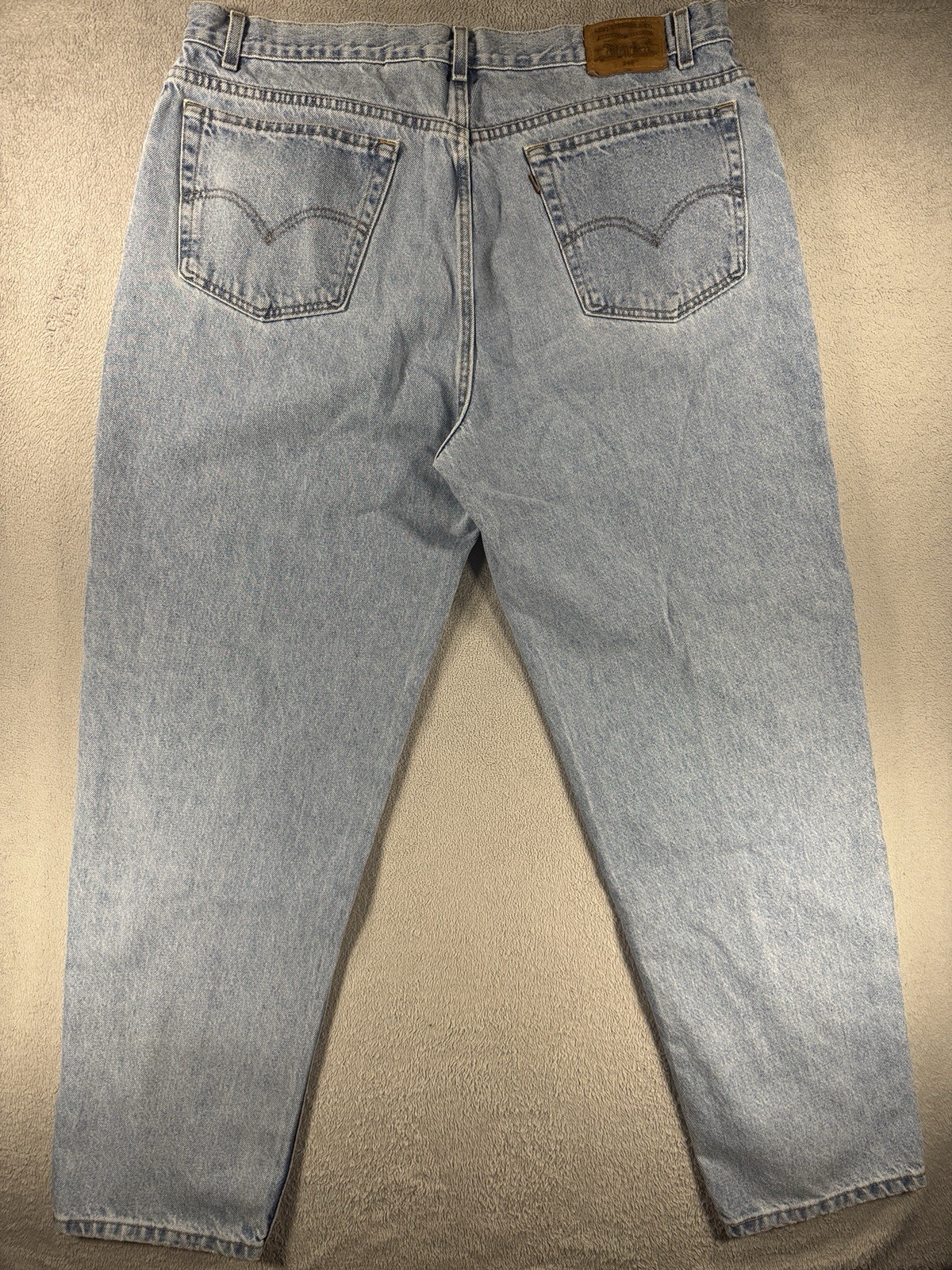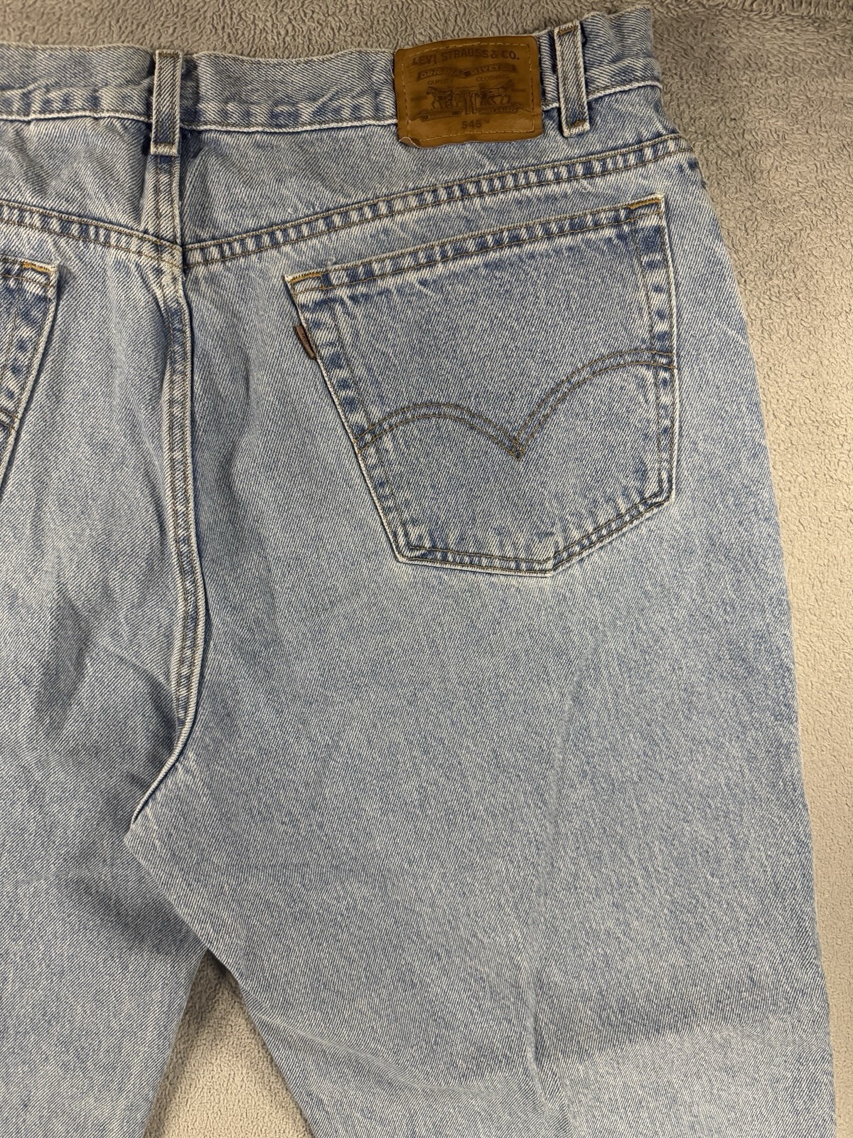 Vintage Levis 545 Jeans Mens 42 X 32 Blue Washed Loose Fit USA Made Brown Label