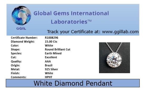 RARE 15 Ct Certified White Diamond Solitaire Necklace FREE Diamond studs