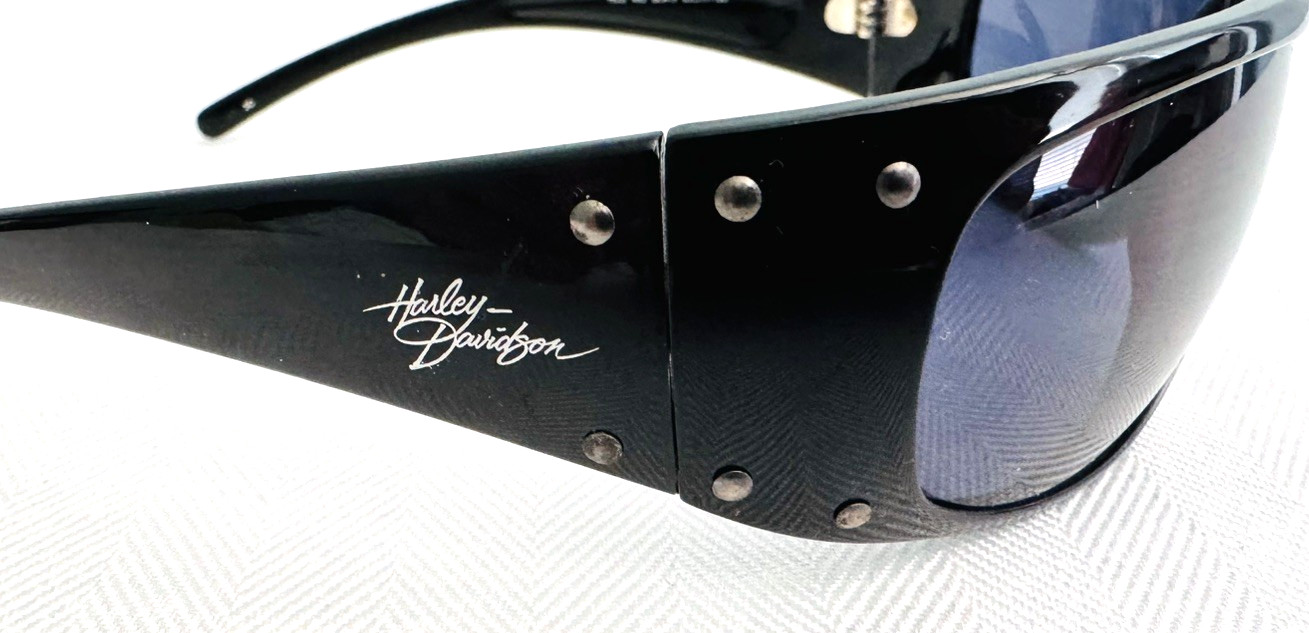 как выглядит Genuine 2004 HARLEY DAVIDSON SUNGLASSES 63mm Blue Lens Black Wrap Frame HDS 482 фото