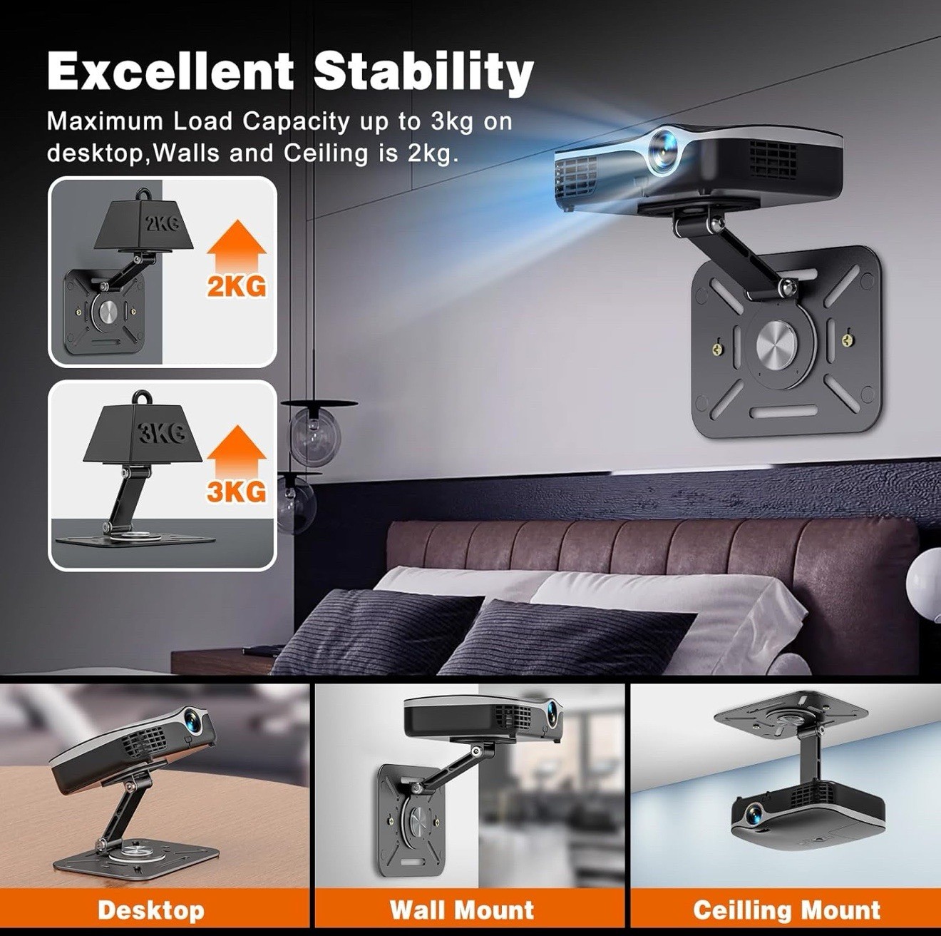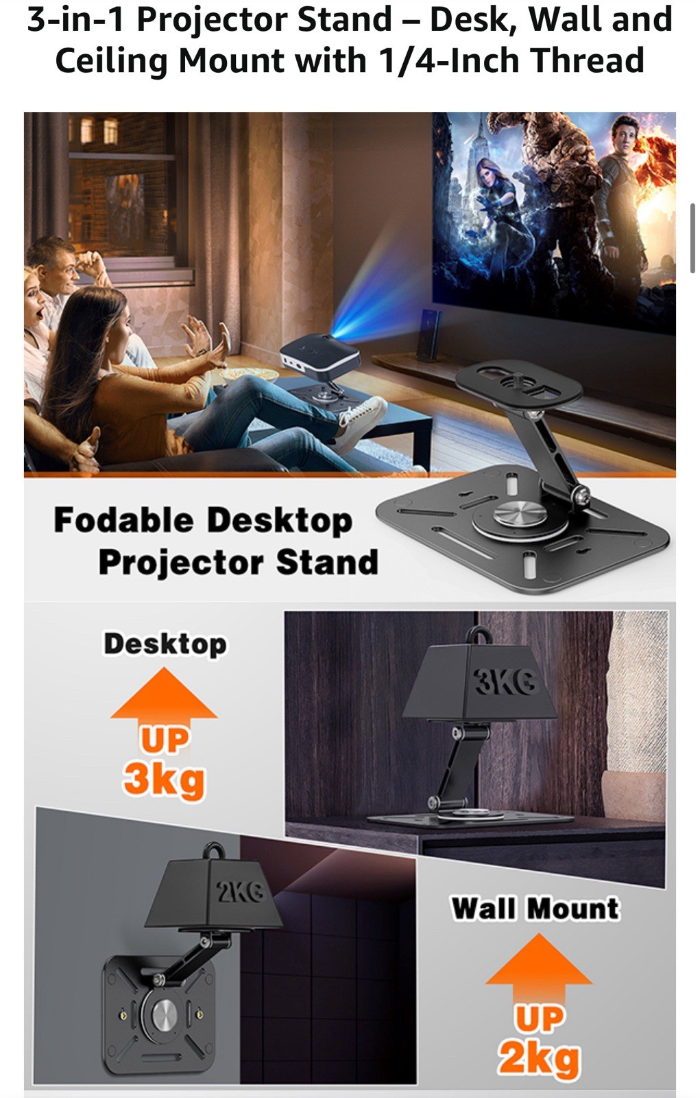 Projector Foldable Stand, Ultra-Compact Projector Stand with Easy Setup, 180 ...