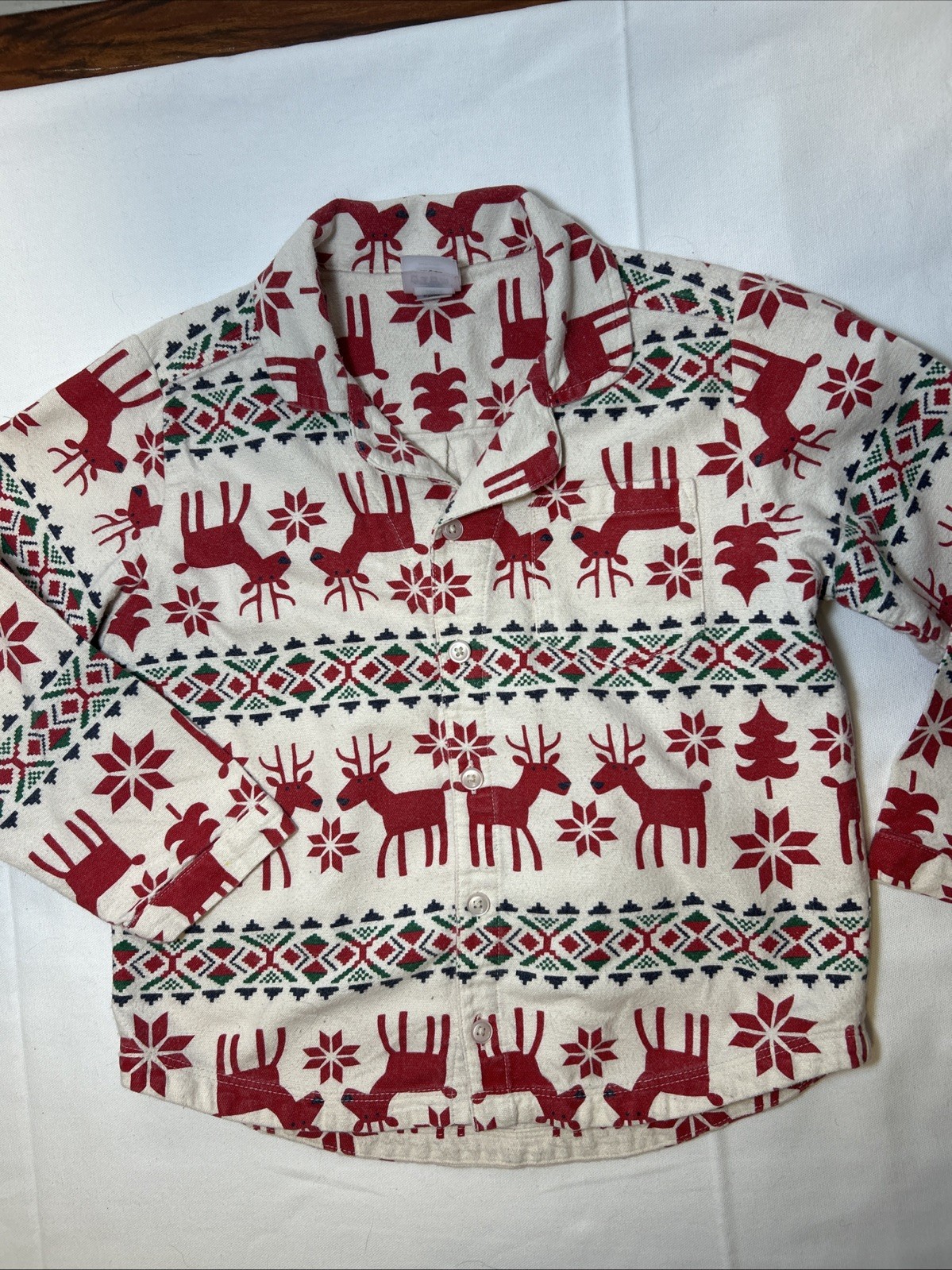 как выглядит Hanna Andersson Size 110 5 Kids Two Piece Holiday Flannel Pajama Set Reindeer фото
