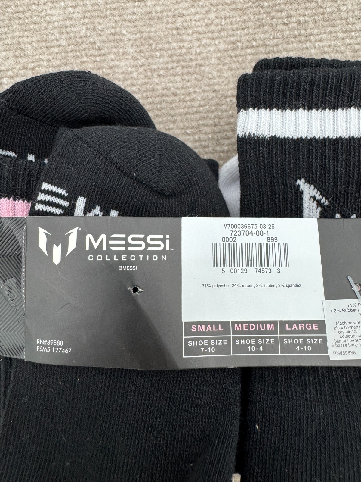 как выглядит Messi Collection 4 Pack Black White Athletic Crew Socks Boys Size Small DEFCT фото