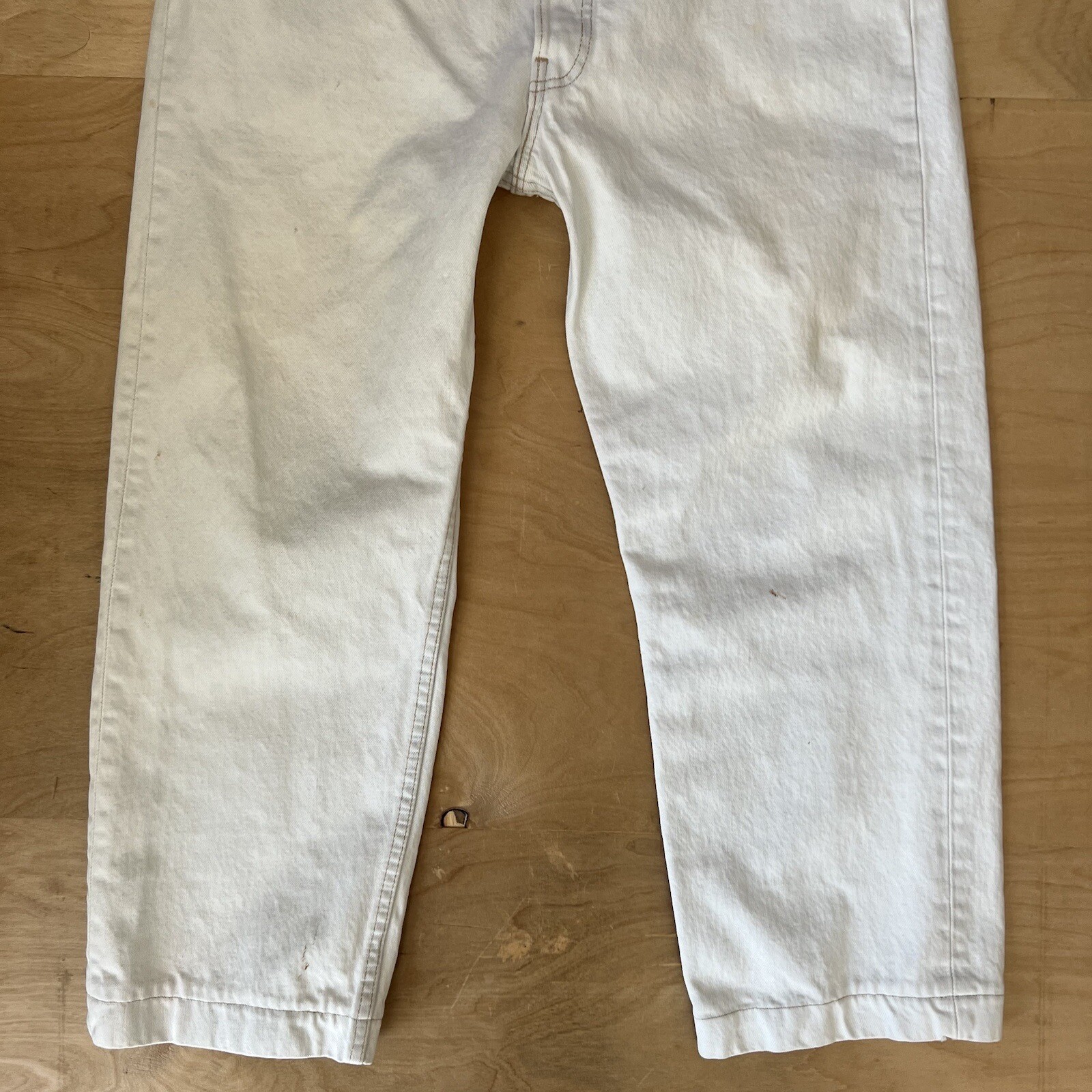 Vintage Levis 501 Jeans 35 White 80s Light Wash Denim Workwear Non Selvedge