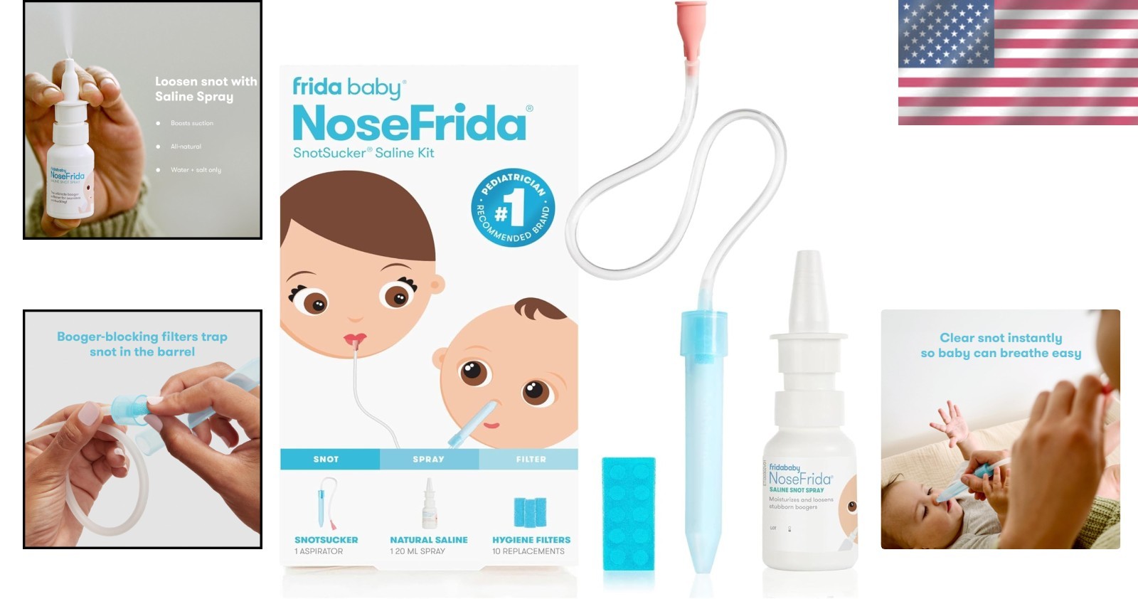 Baby Nasal Aspirator Bundle: NoseFrida with Saline Filters Easy Clean