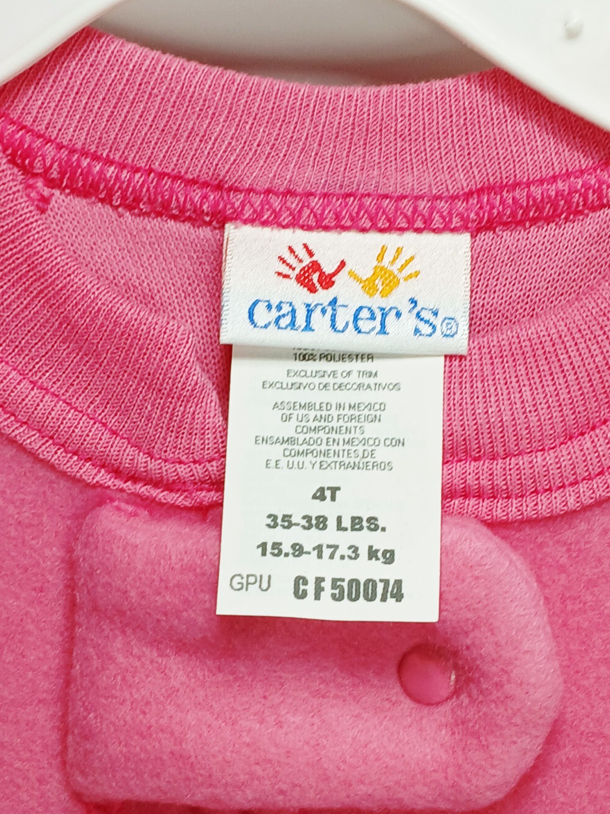 Vtg 90's Carters Girls Pink Fuzzy Fleece One Piece Sleeper size 4T New old stock