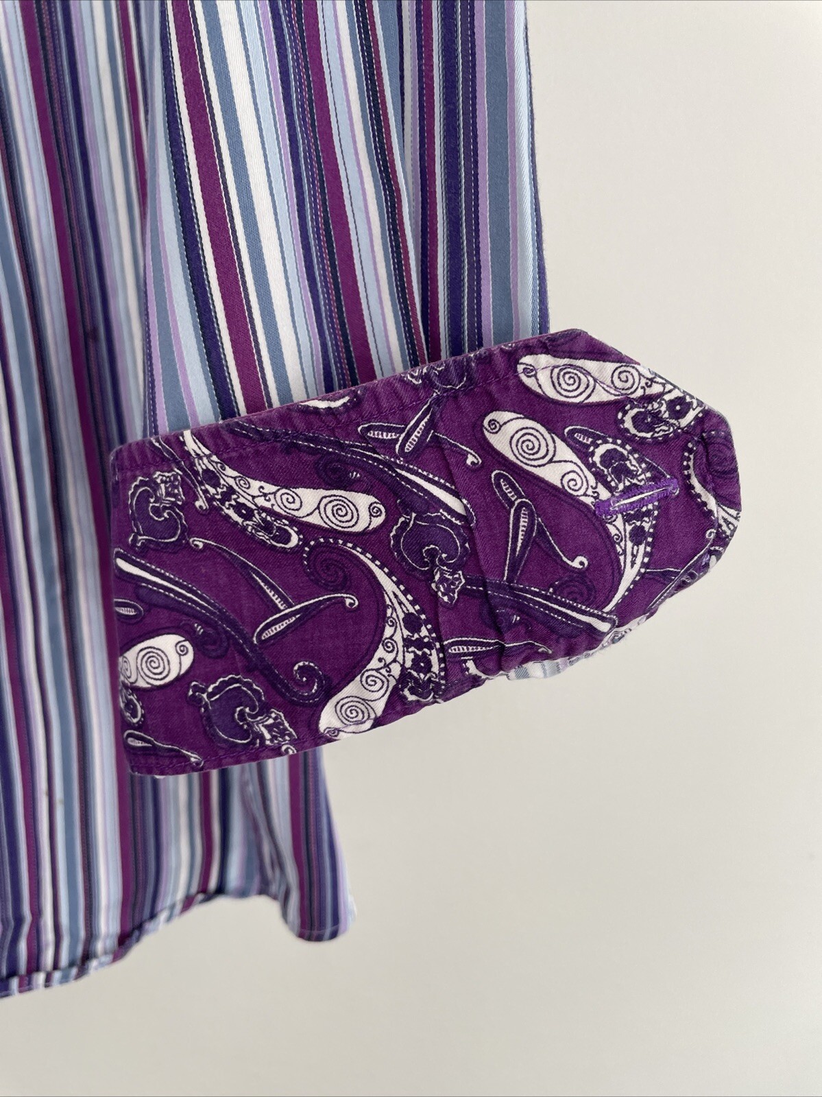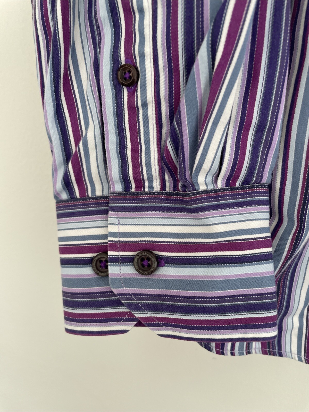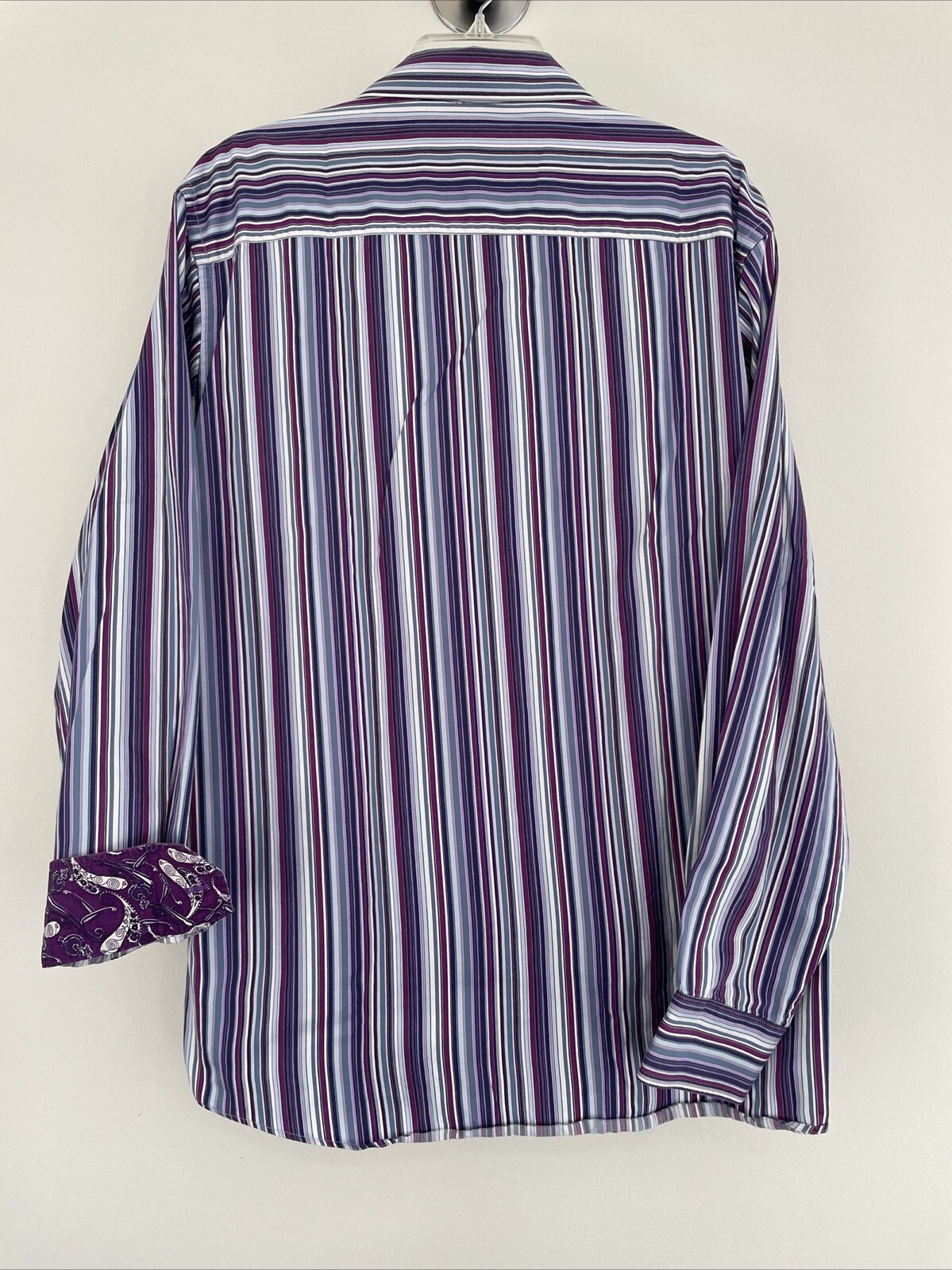 Bugatchi Uomo Men s Large Long Sleeve Flip Cuff Button Up Shirt Blue Purple