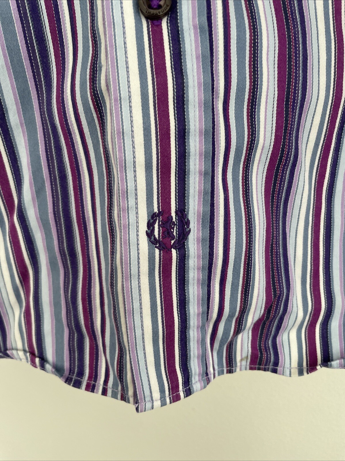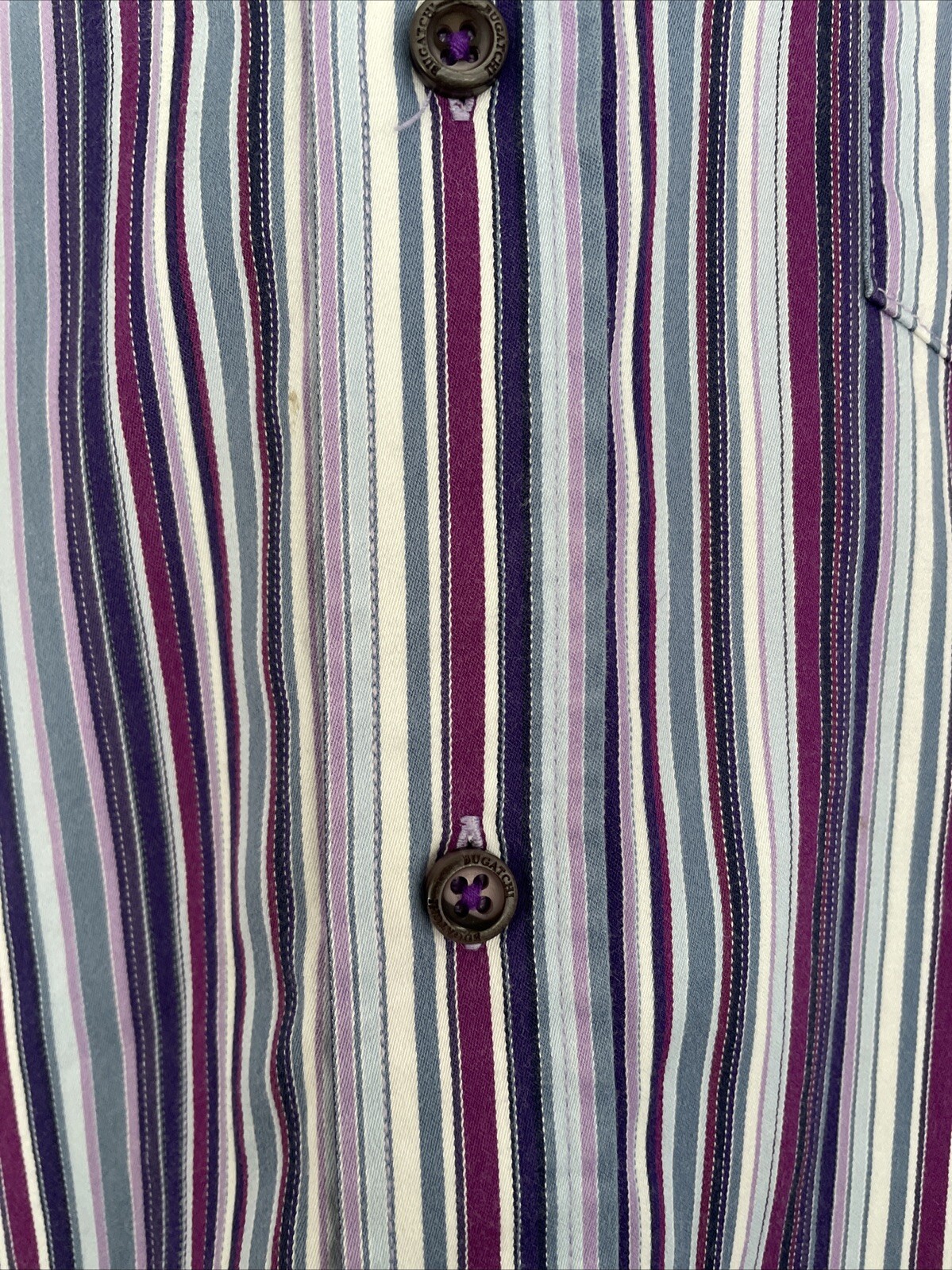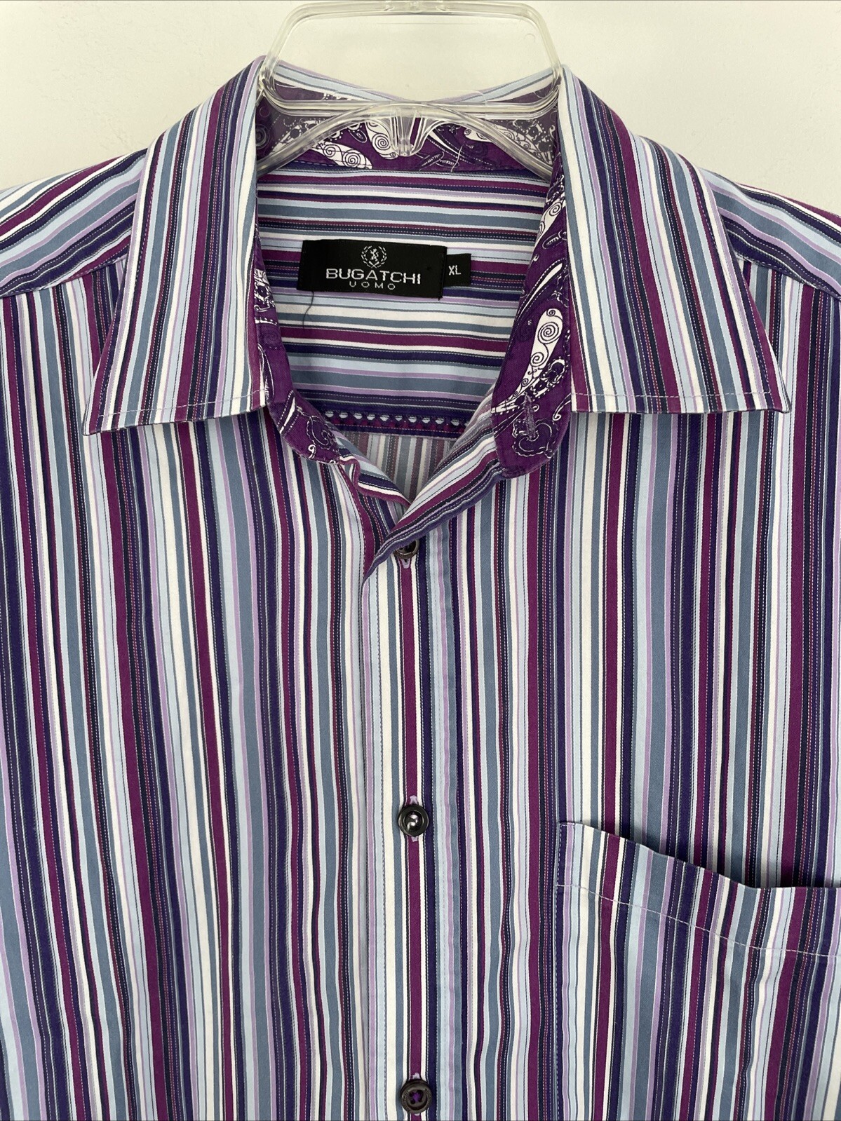 Bugatchi Uomo Men s Large Long Sleeve Flip Cuff Button Up Shirt Blue Purple