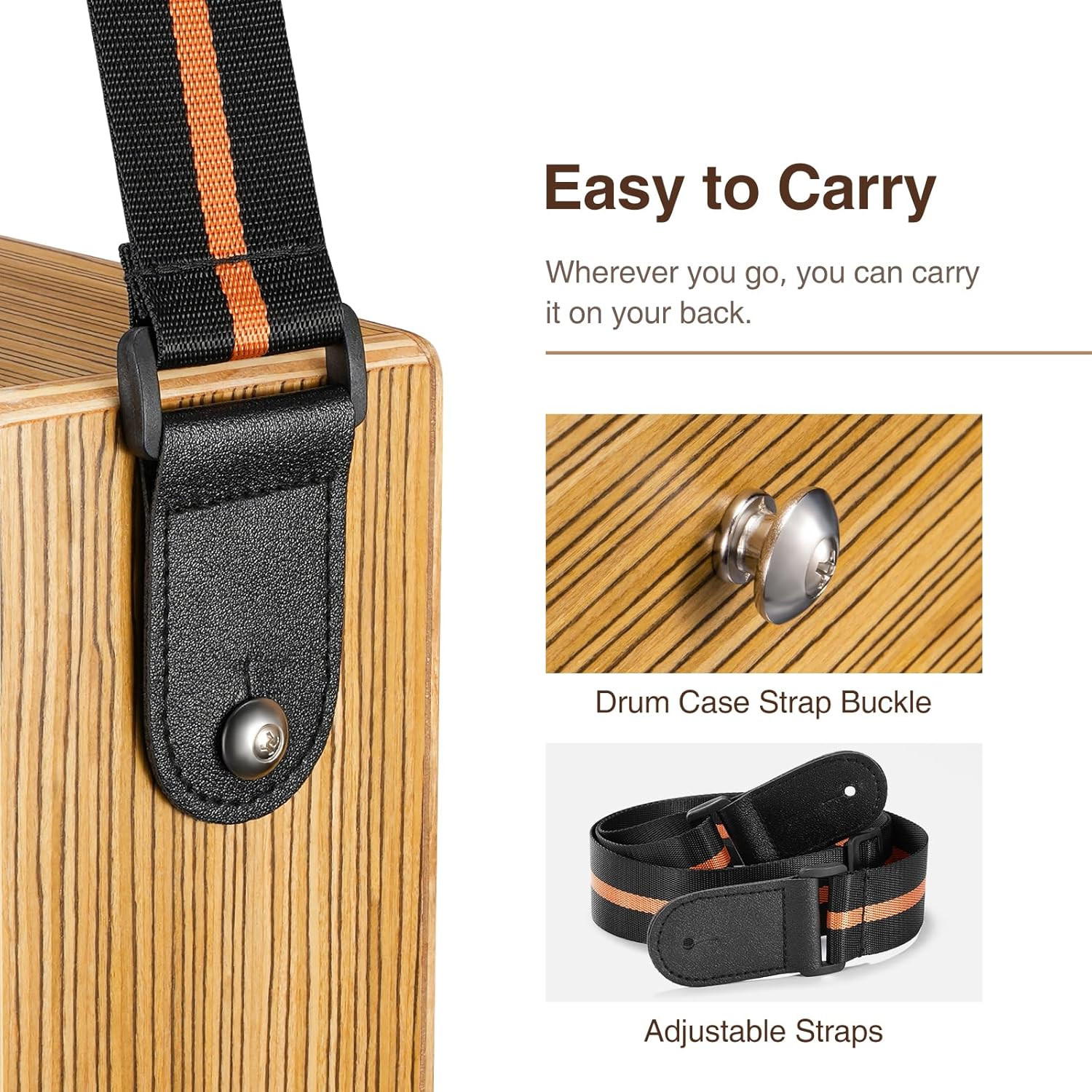 Travel Cajon Drum, Portable Adjustable Tone Thick Wooden Cajon with Adjustable S