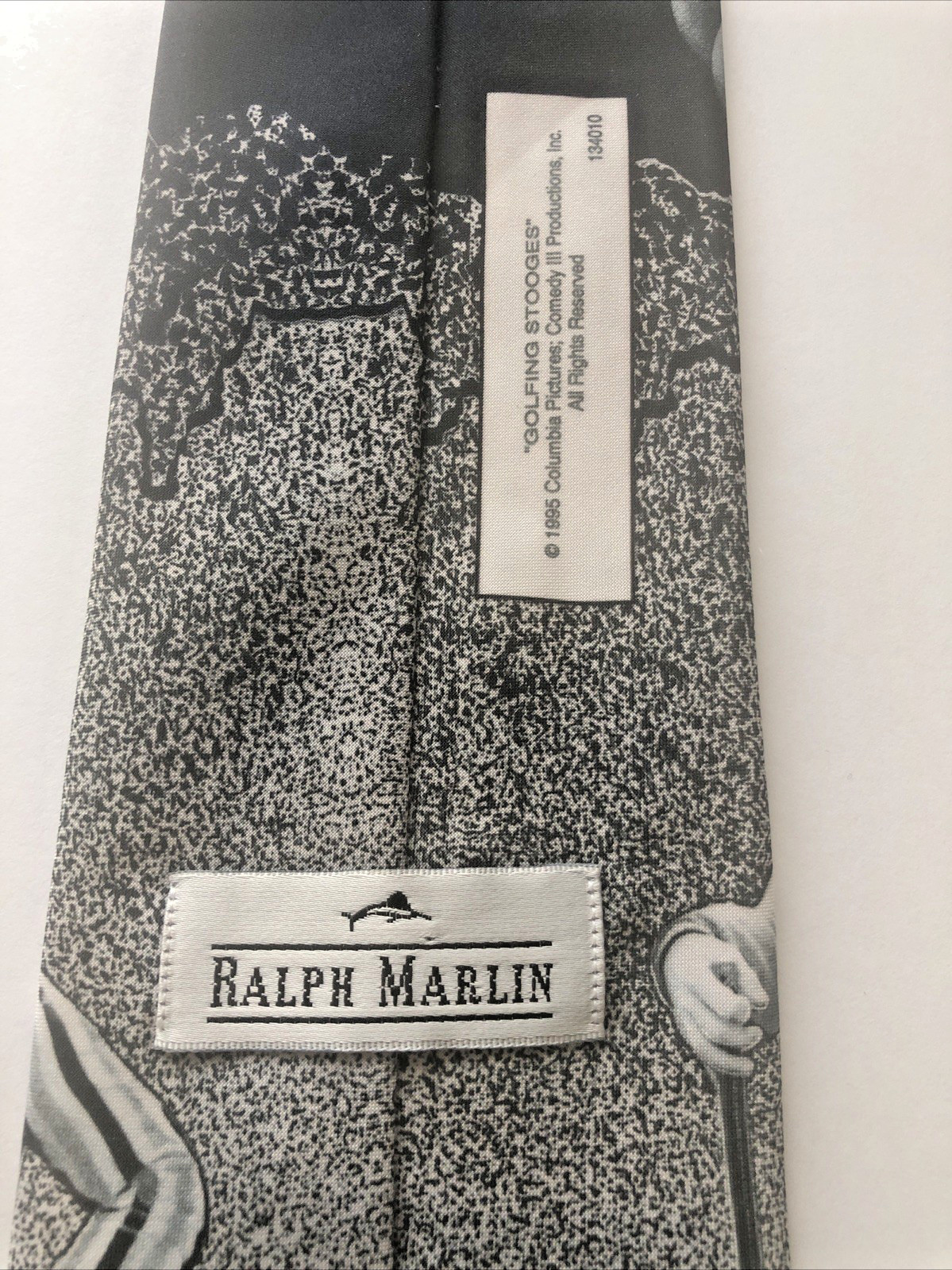 Neck Tie VTG Ralph Marlin Golfing Stooges 90s Stooge Heads Tie 1995