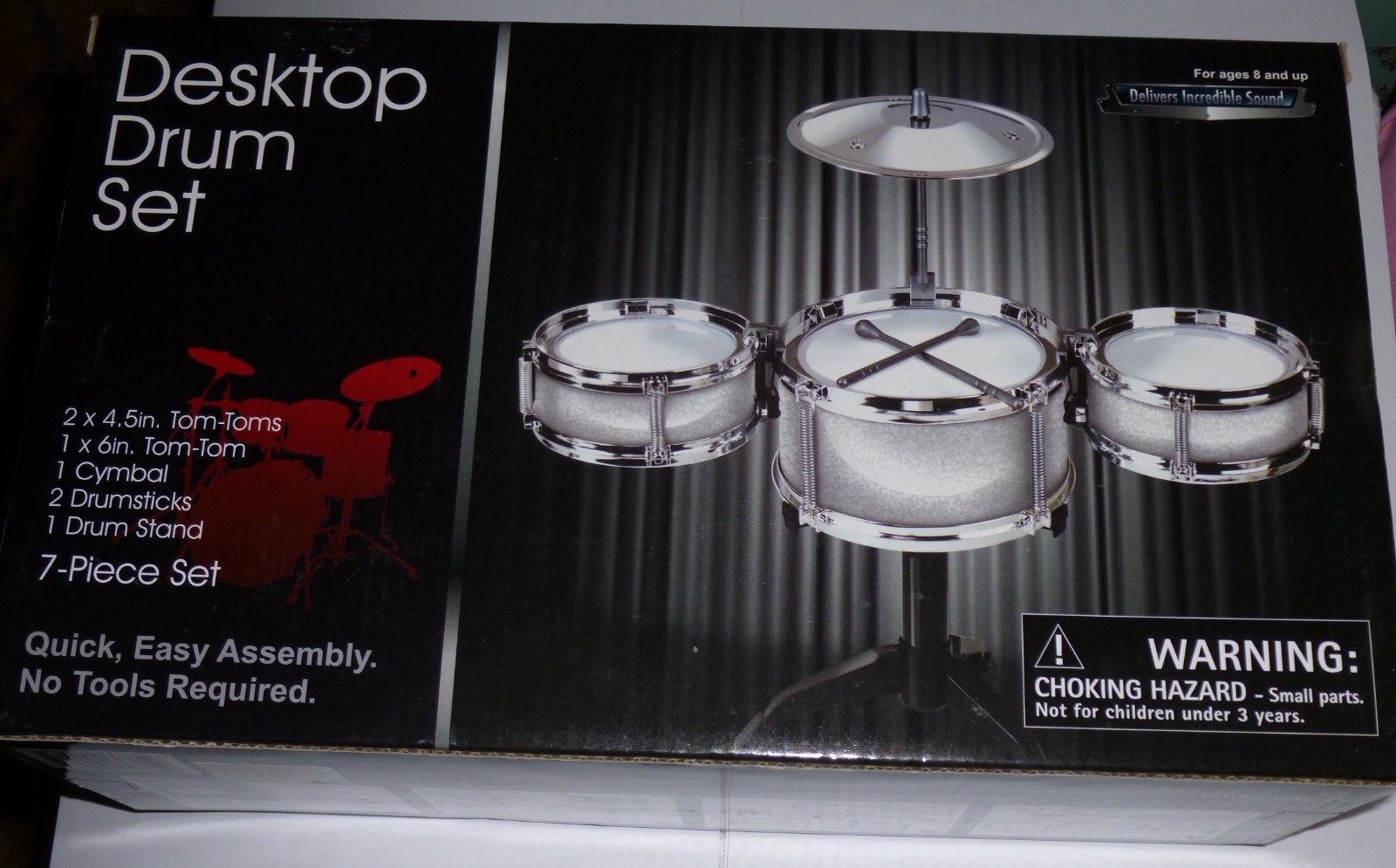 DESKTOP DRUM SET Retro Three Drum Cymbal Set with Great Sound NEW 7 PIECE SET