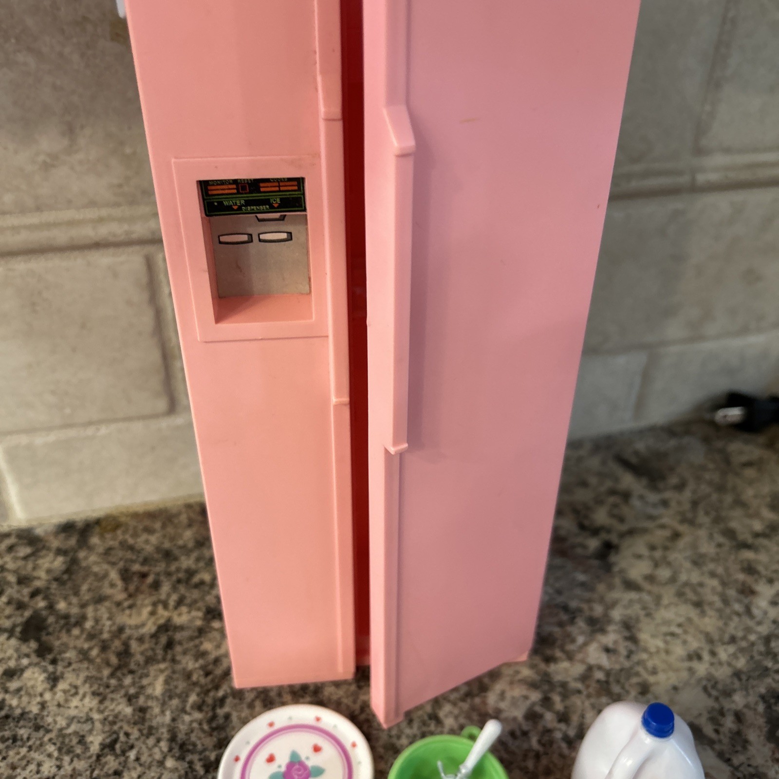 как выглядит VTG 90s Barbie Kitchen LOT Fun Fixin FOOD Dishes Arco Pink Refrigerator Fridge фото