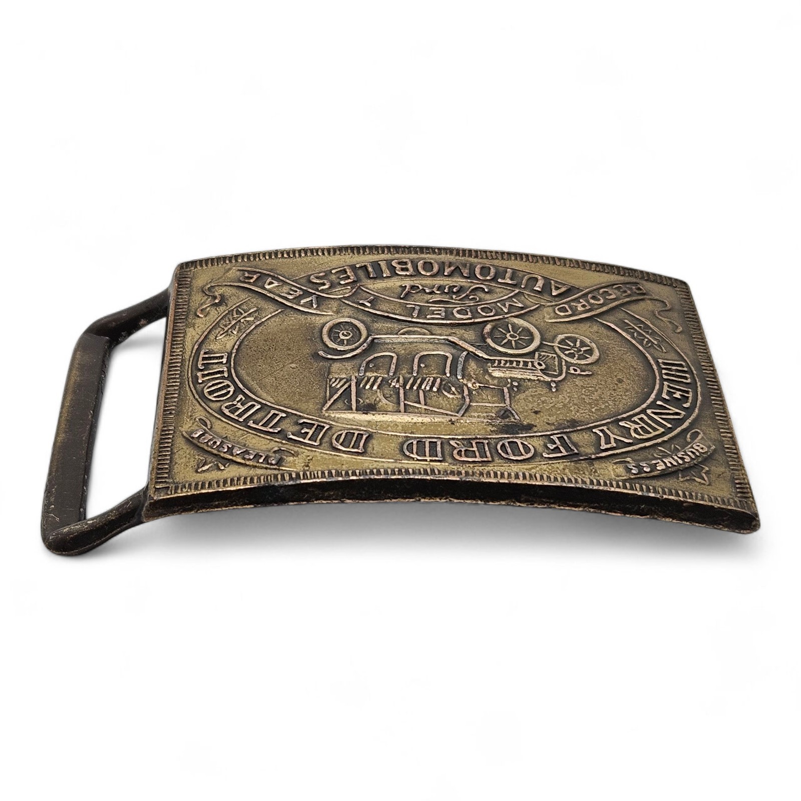 Vintage Henry Ford Detroit Automobiles Model T Record Year Brass Belt Buckle