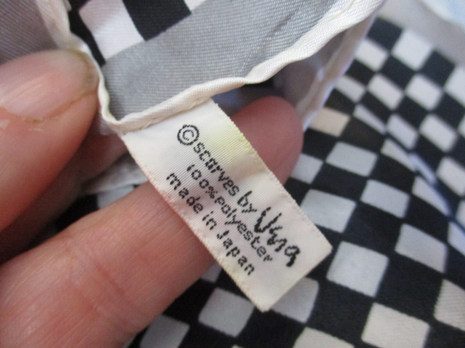 как выглядит Vtg Vera Ladybug Black White Gray Geometric Checkerboard Oblong Scarf 43" Japan фото