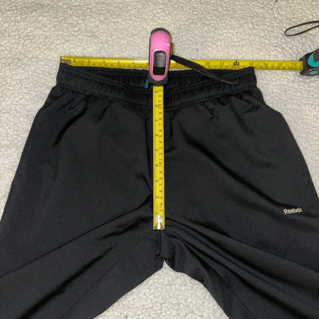 как выглядит Reebok Small Active Track Pants Elastic Waist Solid Black Mesh Lining Womens EUC фото