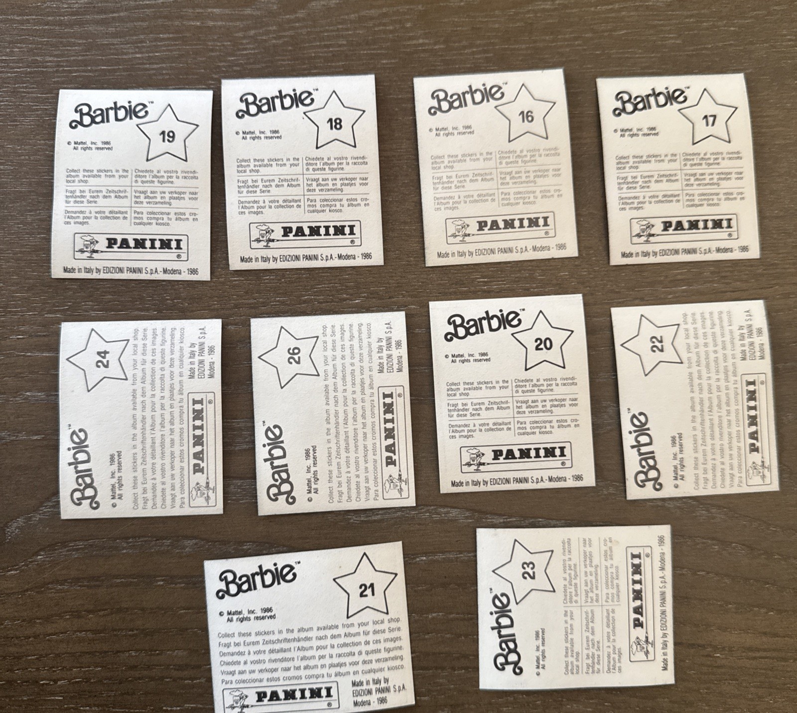 Lot E 10ct 1986 Barbie Mattel Panini Italy Album Sticker Trading Card Lot