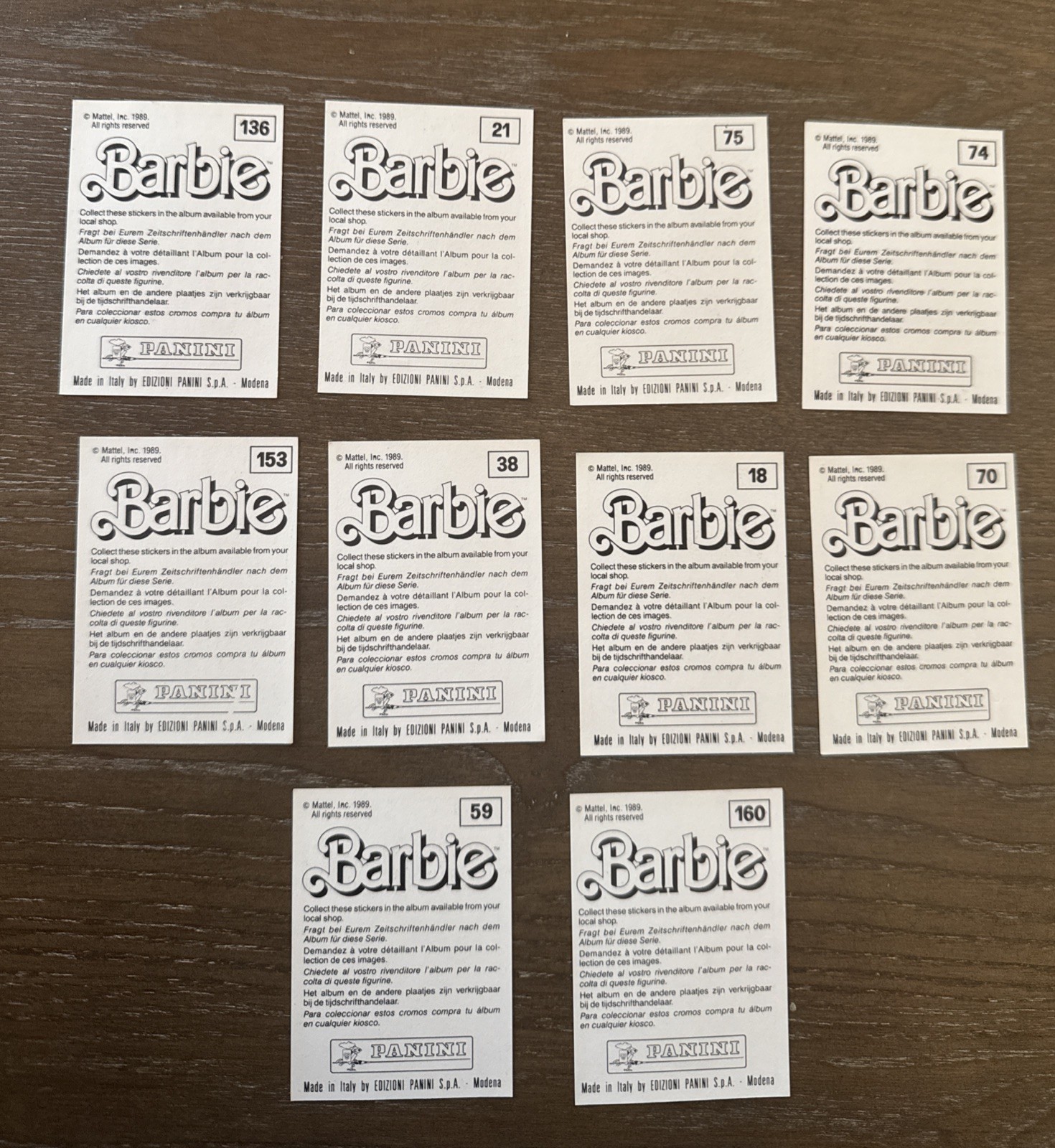 • Lot A 10ct 1989 Barbie Panini Italy Album Sticker Trading Card Lot