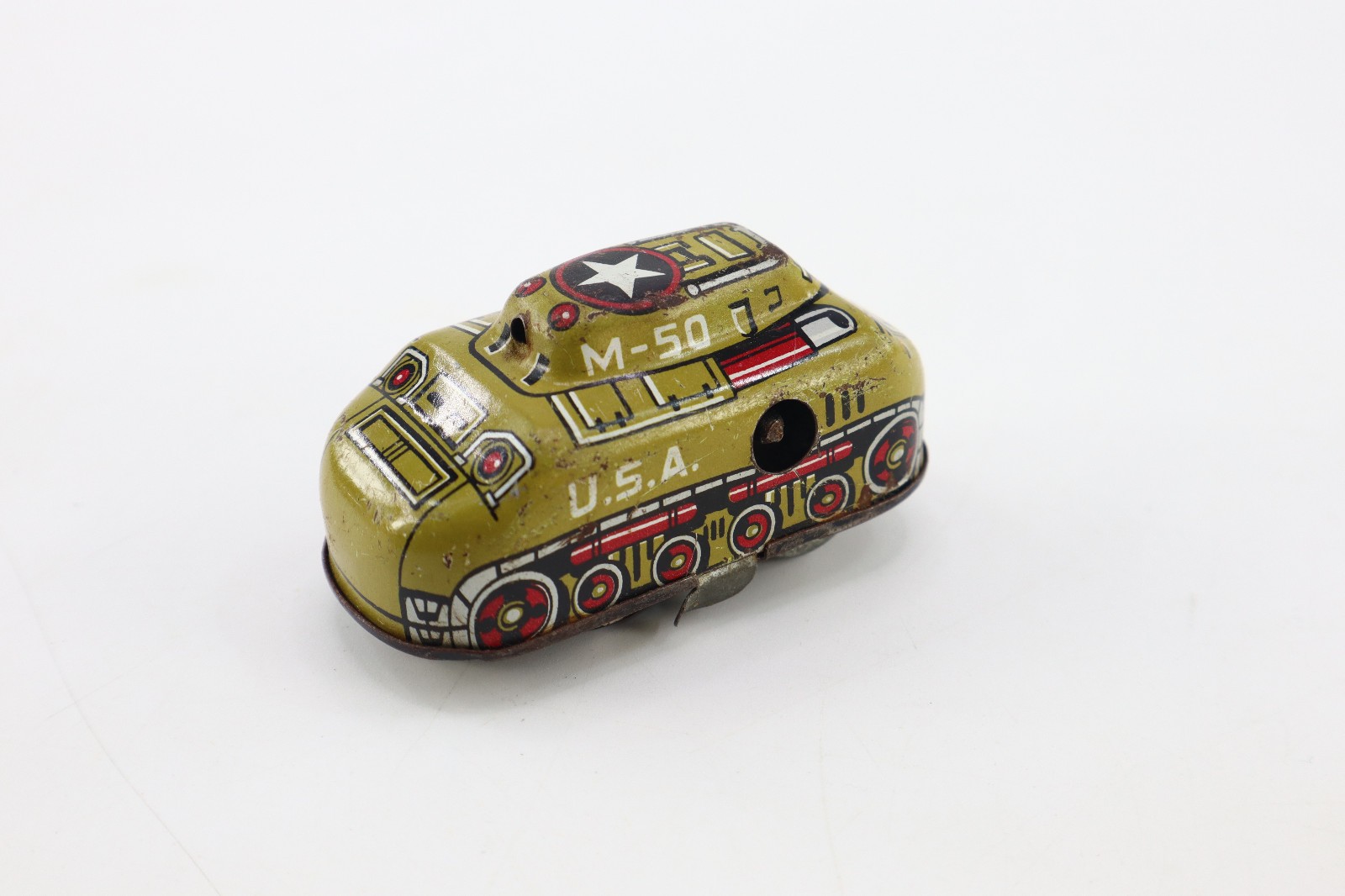 Vtg U.S. Army M-50 Tin Litho Wind Up Military Tank Toy Japan Rat Not Working