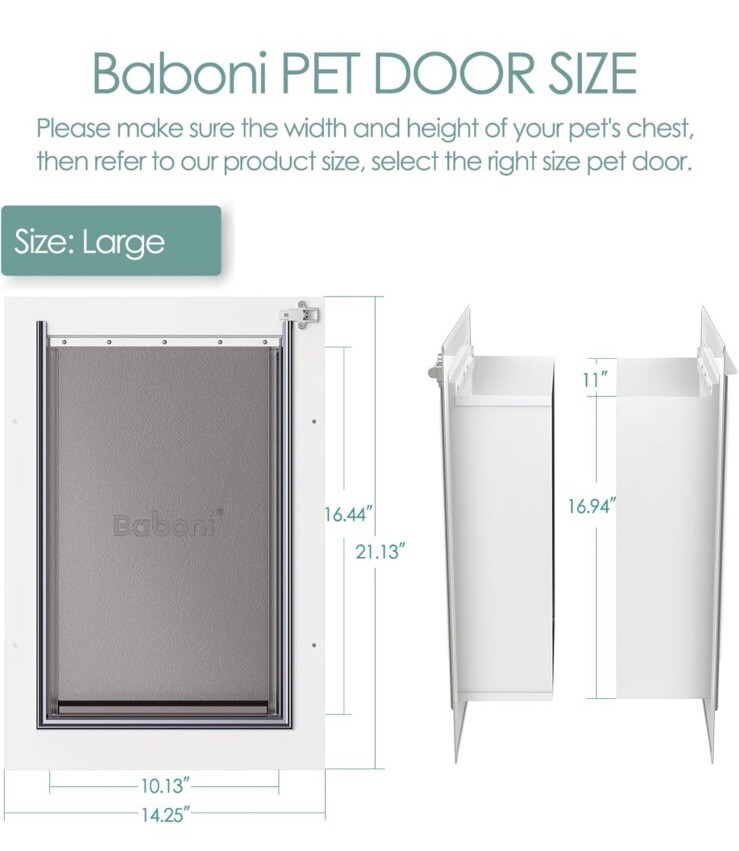 Large Baboni Pet Door for Wall, Steel Frame and Telescoping Tunnel, OB - Read