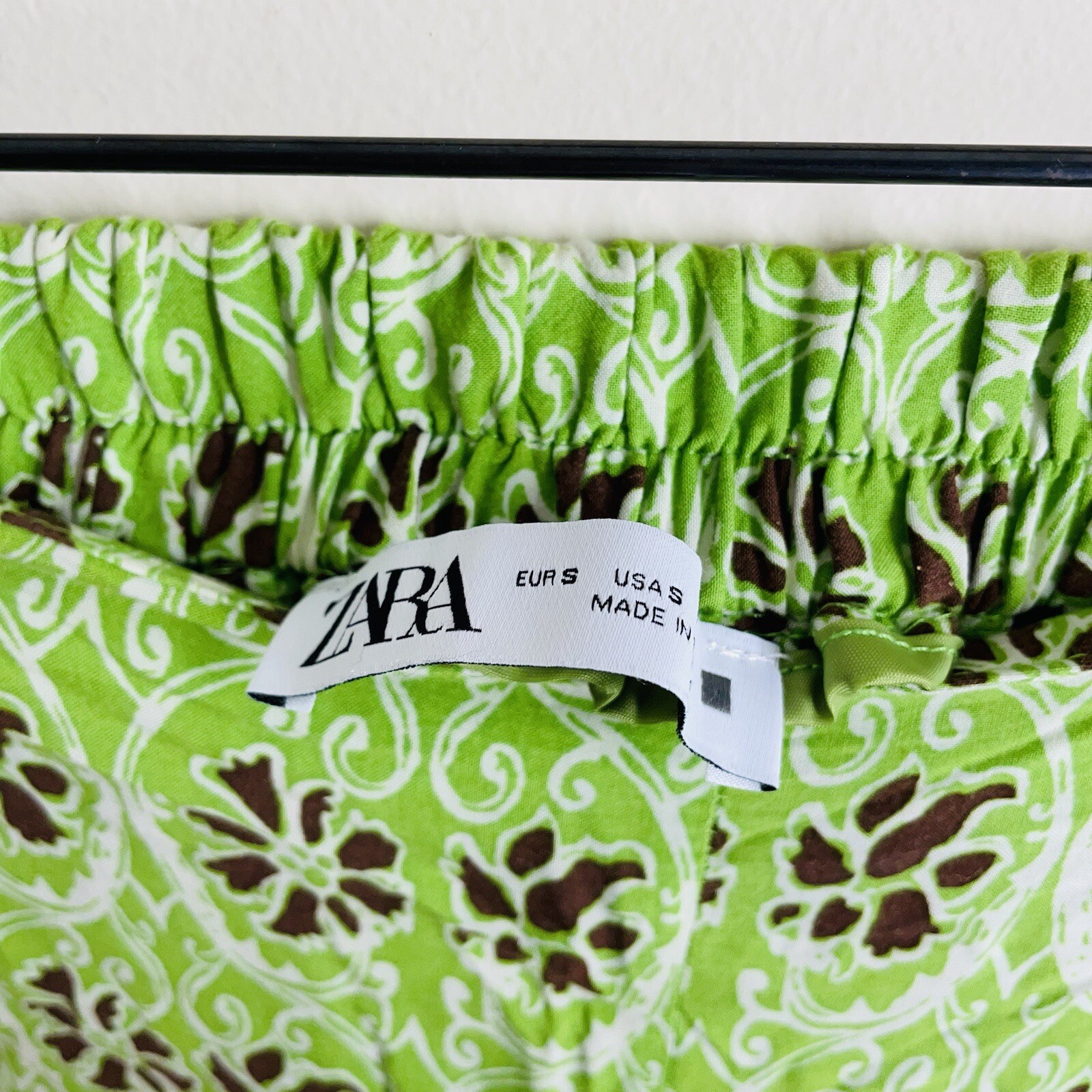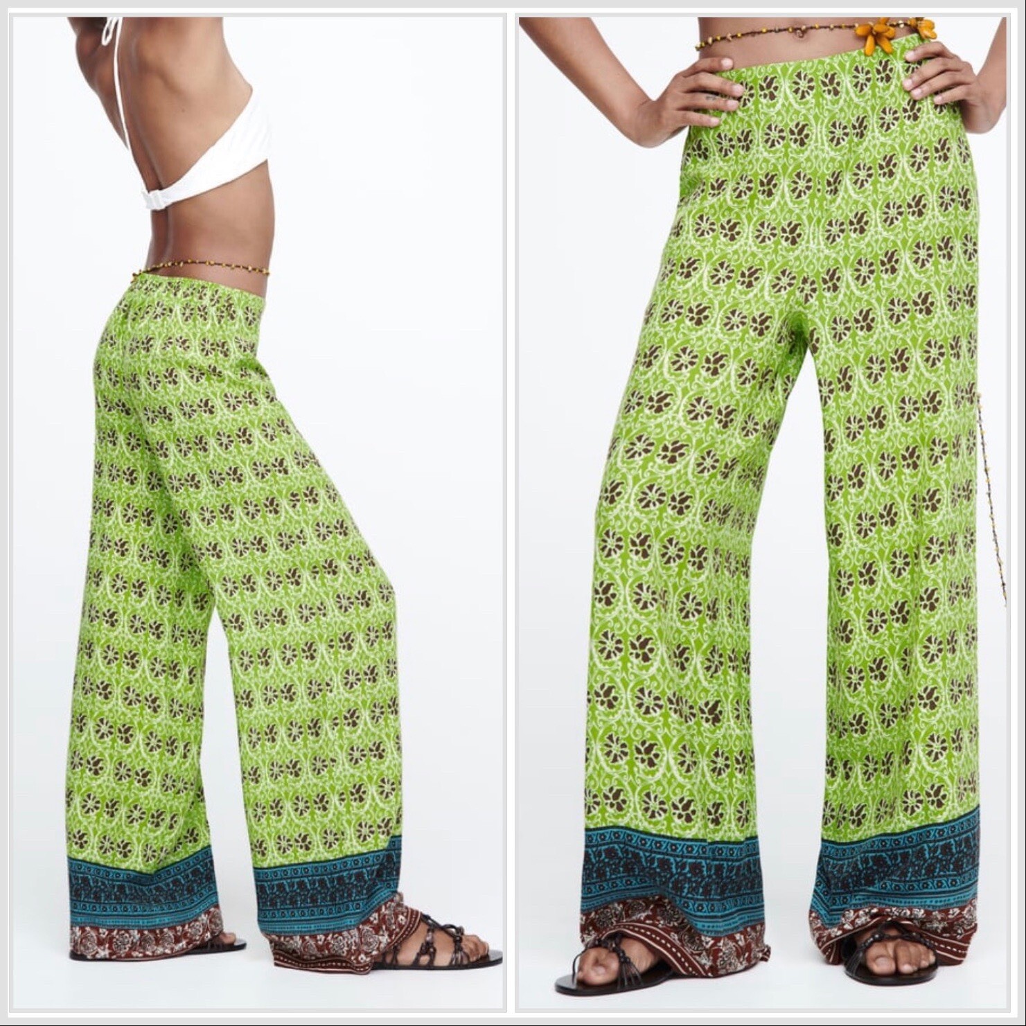 Zara Full Length Printed Wide Leg Trousers Green size S