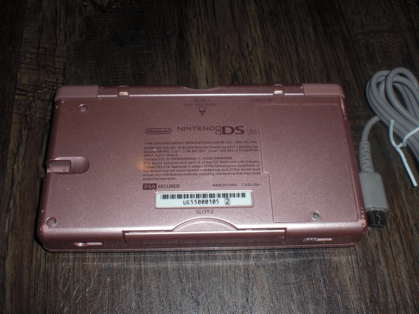 Nintendo DS Lite Metallic Rose Pink Console System Charger Plays DS GBA Games