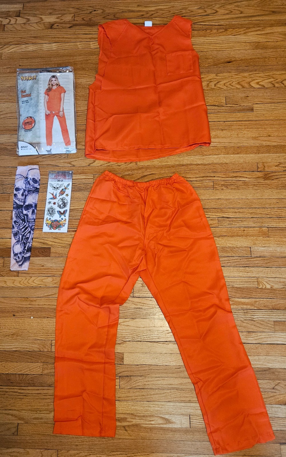 как выглядит INMATE Spirit Halloween 2 piece COSTUME Size Adult Small GOT BUSTED Jail Prison фото