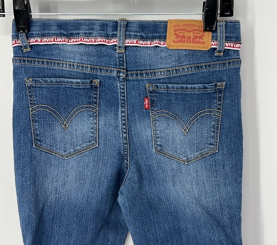 как выглядит Levi s 720 high rise ankle super skinny girls 14 Dark Wash Denim Adjustable фото