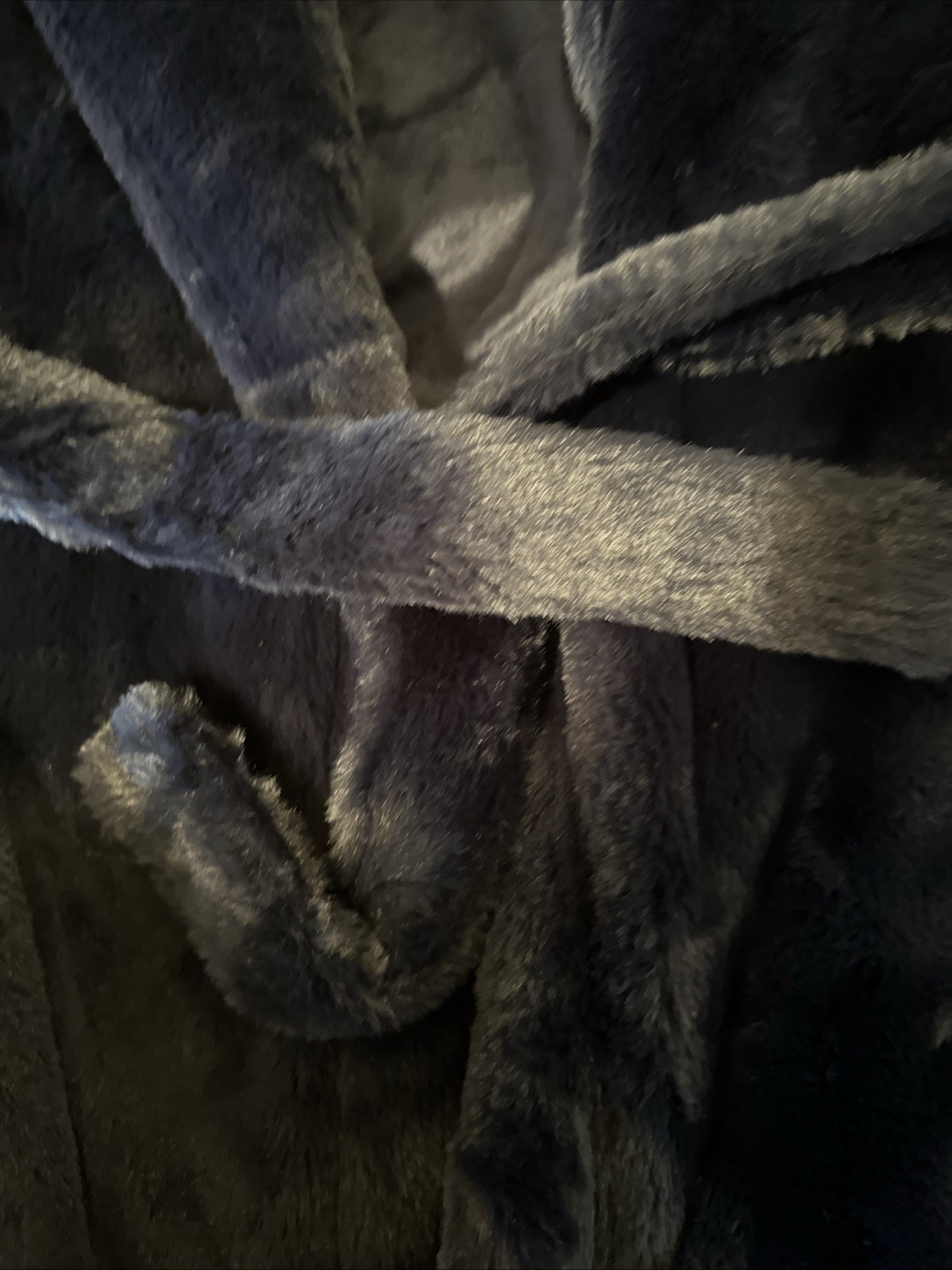 как выглядит Minky Couture Womens Faux Fur Robe Midi Plush Navy Blue Belted Cozy Warm Size XL фото